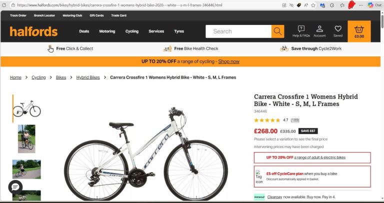 New Carrera hybrid bike in good working order, ready for a new owner.