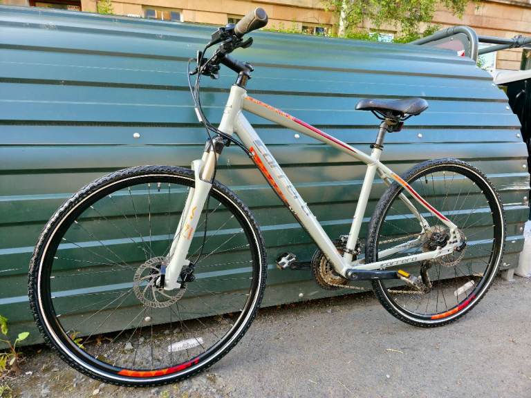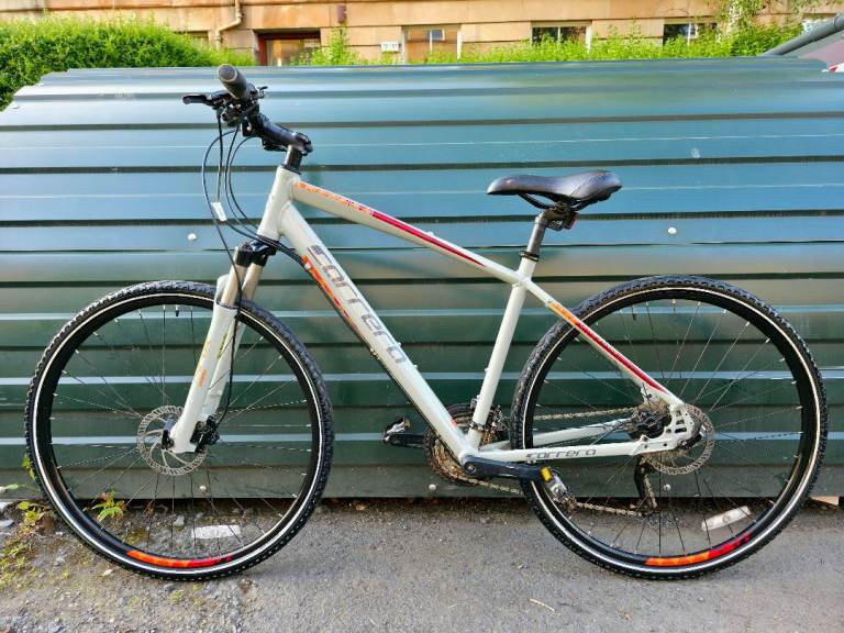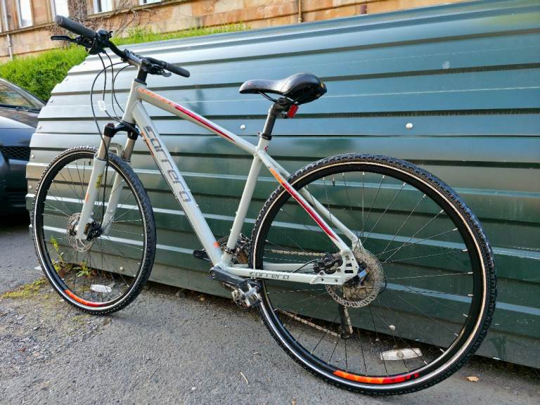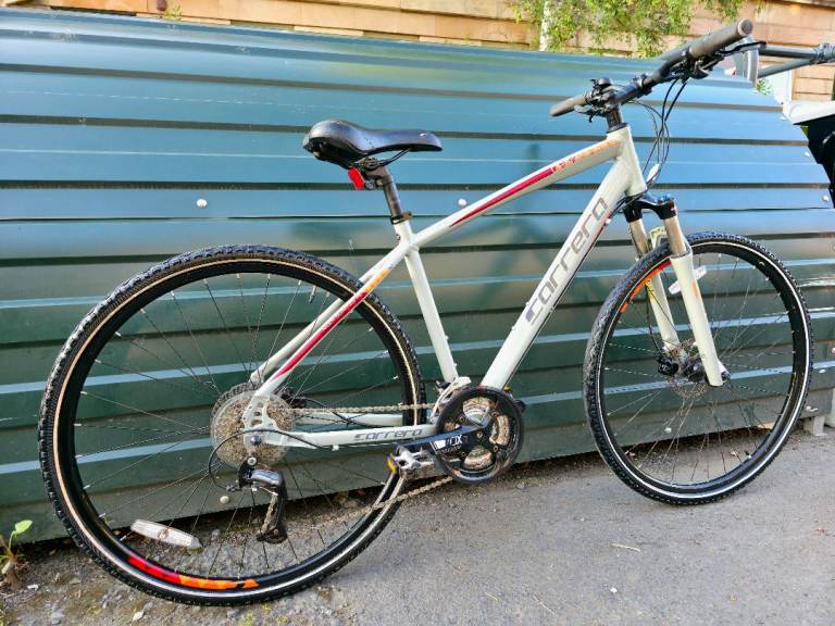 Carrera Crossfire 3 hyrbid bike in a large sized frame. The bike is in excellent condition and ready to ride away. Finished in a lovely sand grey colour.