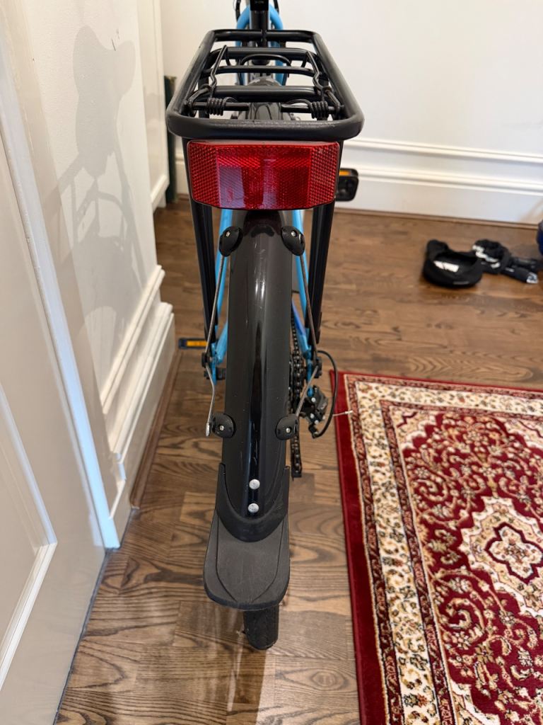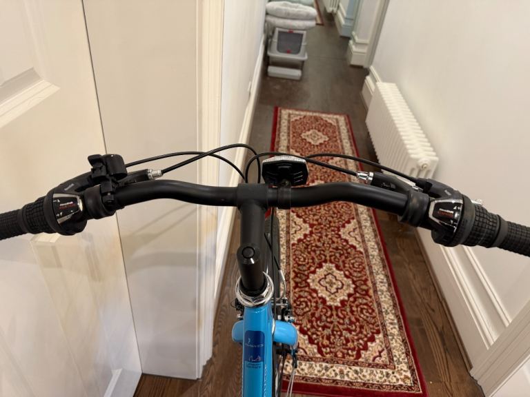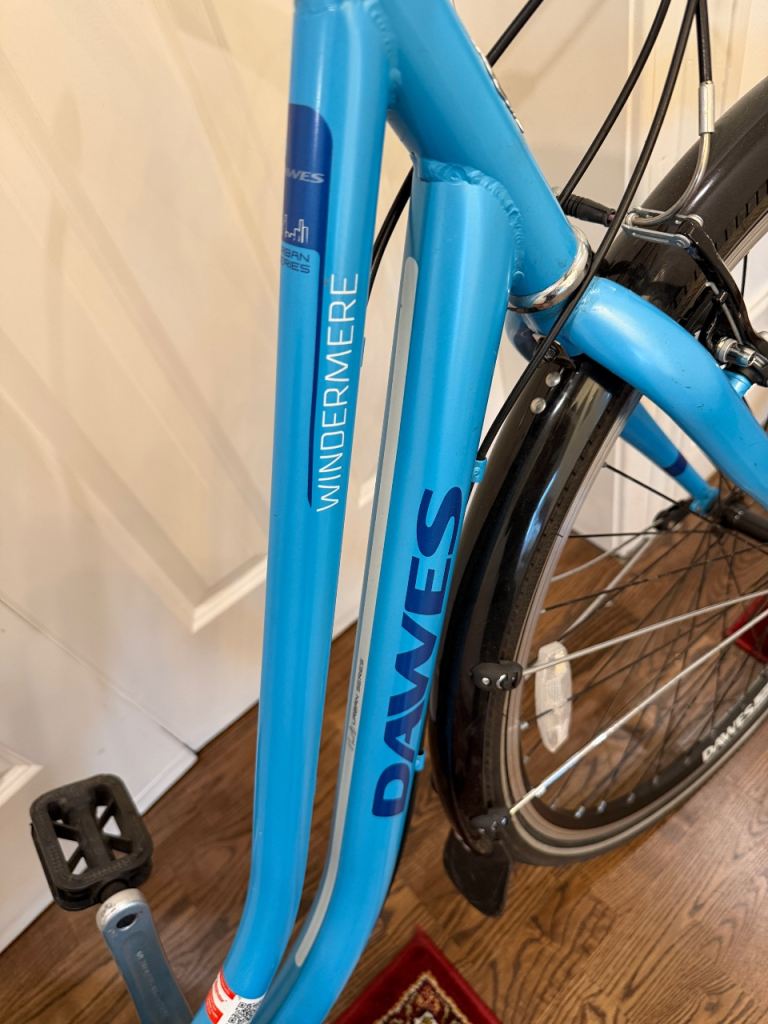 Blue Dawes Windermere hybrid bike (17in frame) in excellent working order and great condition. Has a rear rack, chain guard, mudguards and stand, perfect for commuting or leisurely rides. Ideal for someone 5ft 2 to 5ft 6. Hardly used. Pick up from G53 or G31 only.