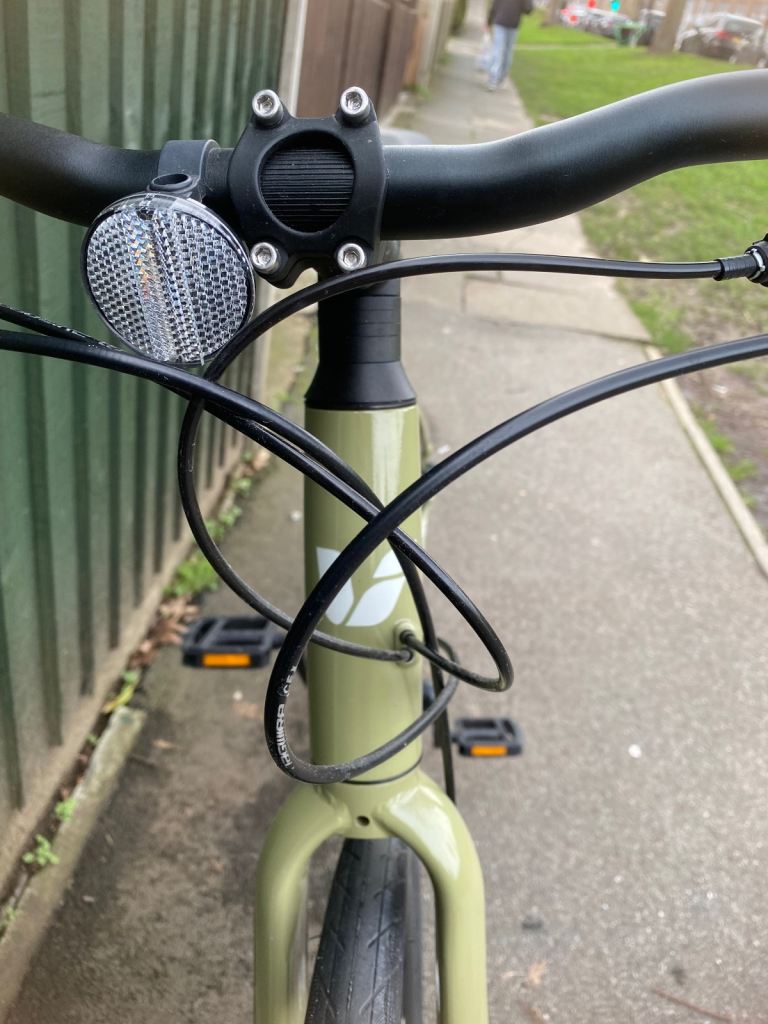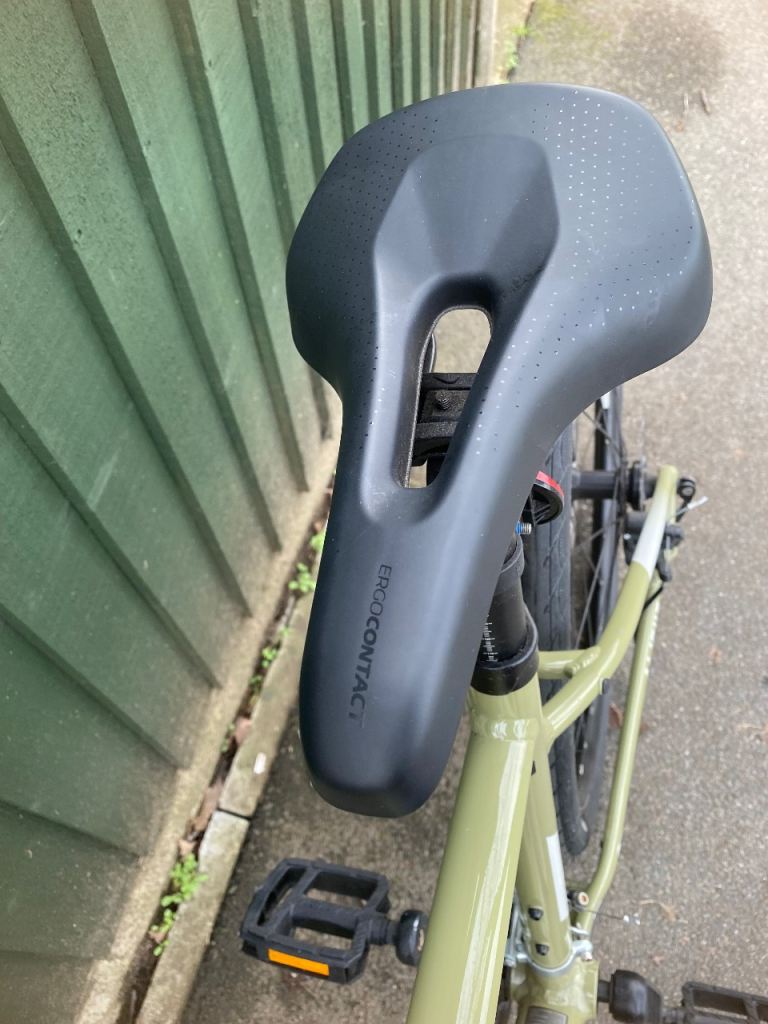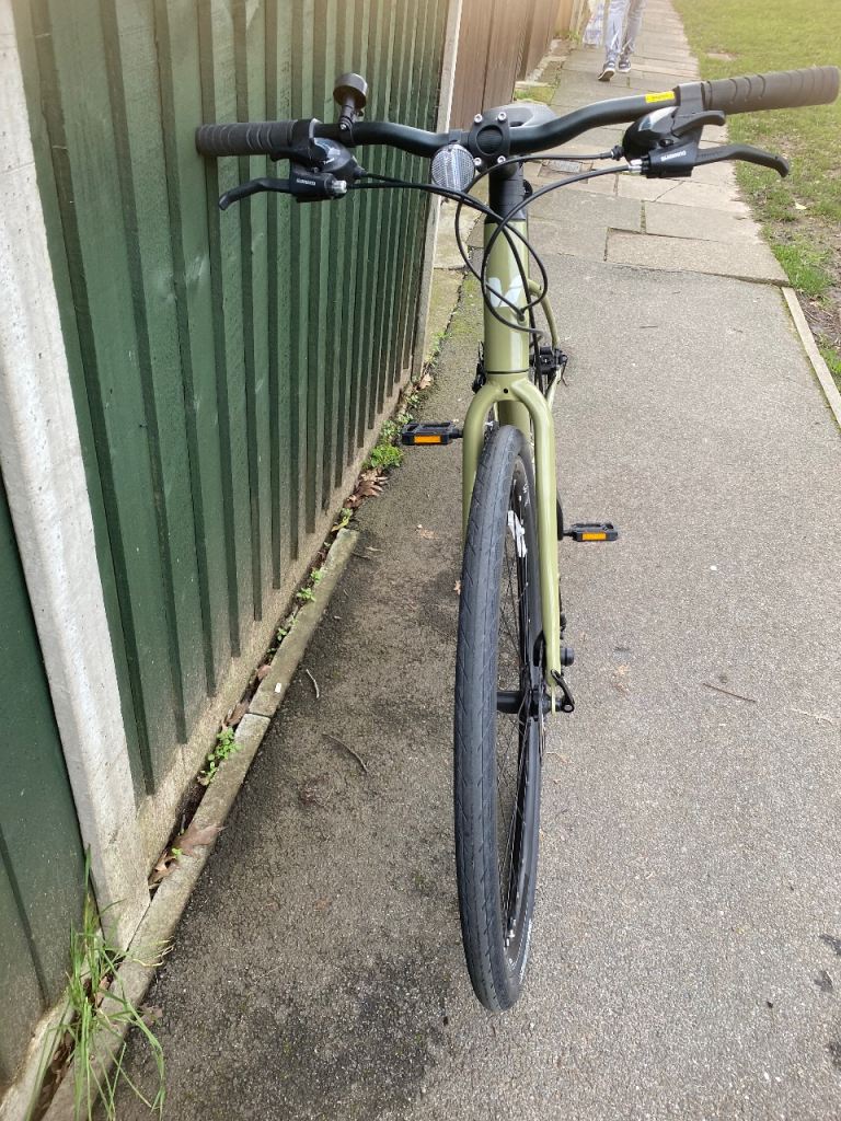 An upright riding position and flat handlebars make commuting or a casual spin comfortable without compromising efficiency.