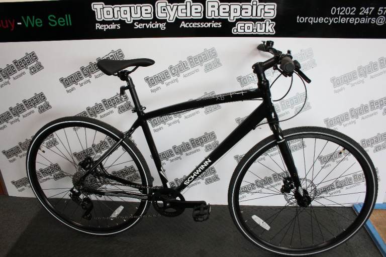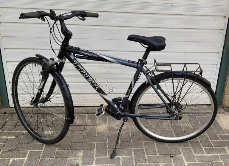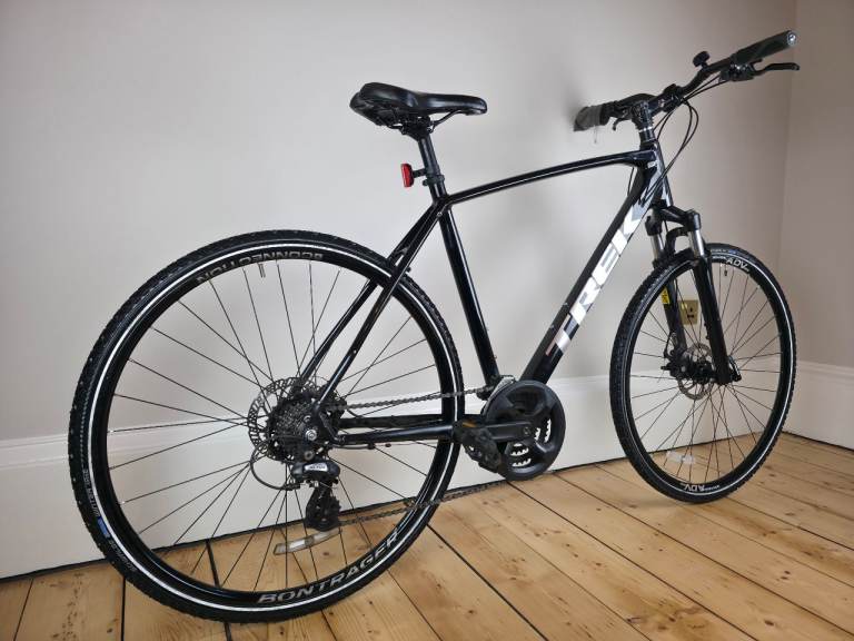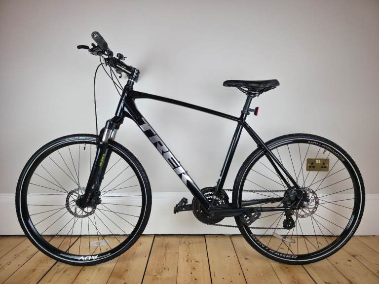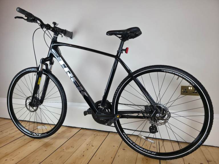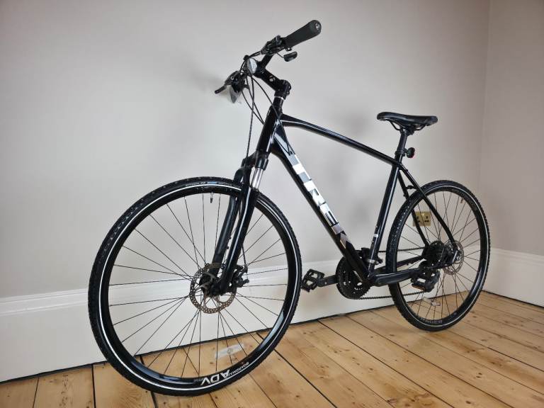 Trek Dual Sport 1 hybrid/ mountain bike in a large size frame. The bike is in excellent condition and ready to ride away. Finished in a lovely gloss black colour.
