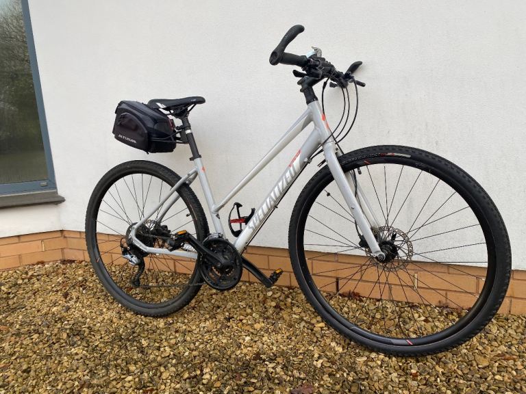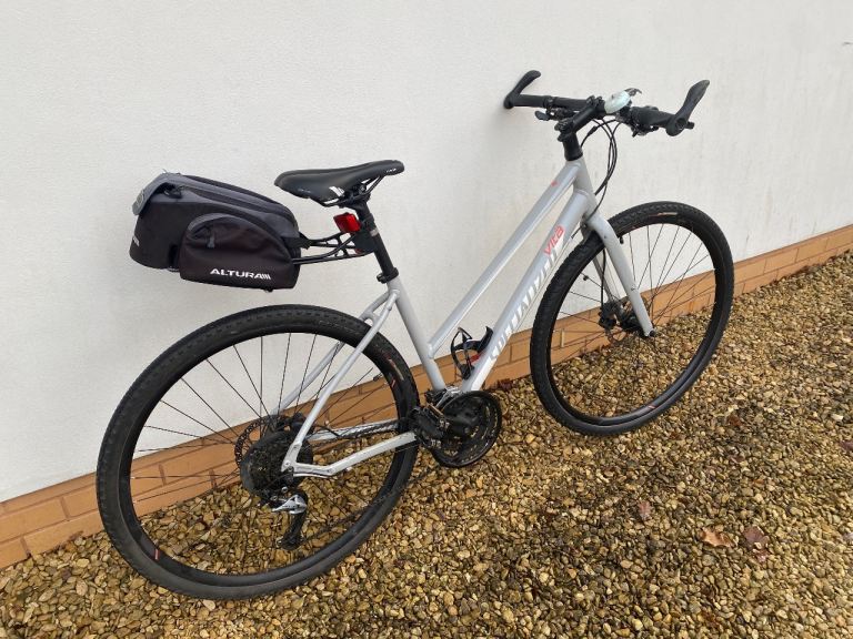 This Specialized Vita hybrid bike is ideal for getting into cycling. It’s a medium frame and has been fitted with puncture resistant tyres, pannier, water bottle holder and bell. It’s in good condition and full working order. The step through feature is great for getting on and off the bike easily!