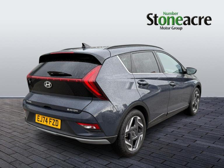 This 2024 Hyundai BAYON T-GDi Premium presents an exceptional opportunity with its remarkably low mileage of just 5088 miles, a testament to its careful single ownership. This stylish and practical hatchback is powered by an efficient 1.0L Petrol Engine, meeting Euro 6 emission standards. The Premium trim level ensures a comfortable and convenient driving experience, enhanced by features such as a rear view parking camera with parking assistance, automatic headlights that activate with a dusk sensor, and a heated steering wheel for those colder mornings. Inside, you'll find climate control air conditioning, ensuring a pleasant cabin temperature in all conditions, complemented by front parking sensors for added peace of mind when manoeuvring.The fuel economy of this Hyundai BAYON is a significant highlight, achieving an impressive 51 miles per gallon, which indicates it is more economical than many similar vehicles on the road. Furthermore, its low CO2 emissions are another key advantage, suggesting a more environmentally conscious choice. With only one owner since new and such low mileage for a 2024 vehicle, this BAYON T-GDi Premium offers excellent value and a well preserved example of Hyundai's popular compact SUV.