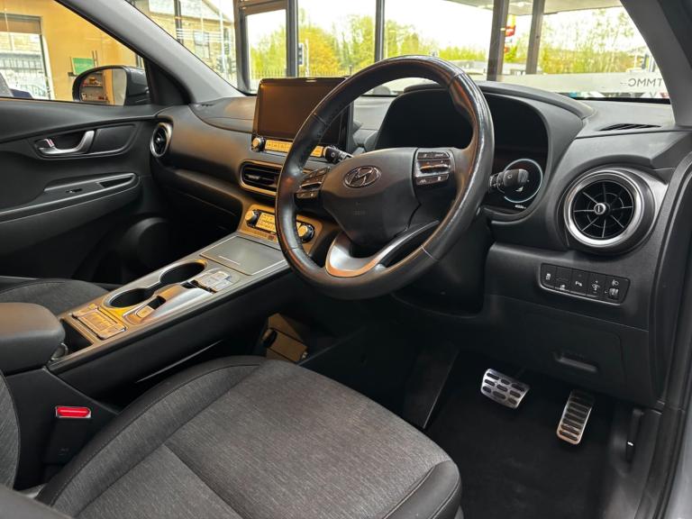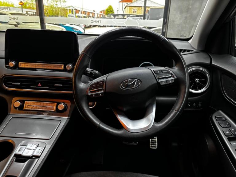 Discover this 2022 Hyundai KONA Premium Electric, a superb example of modern motoring. This vehicle offers an impressive battery maximum range of 300 miles when new, providing ample capability for your journeys. It comes equipped with a substantial 68 kWh battery, ensuring a robust performance. Charging is convenient, with a full charge at home using a 7kW charger taking approximately 10 hours and 16 minutes, while rapid public charging can take you from empty to 80% in just 53 minutes.The KONA Premium is designed with your comfort and safety in mind. It features a rear camera and guidance system, along with front and rear parking sensors, making parking straightforward. Stay connected and entertained with Android Auto integration, and enjoy peace of mind with Blind Spot Collision Avoidance Assist. The climate control system includes an automatic de fogging function for the front windscreen, ensuring clear visibility in all conditions. These features collectively highlight how this Hyundai KONA Premium Electric stands out, offering a refined and well equipped driving experience.
