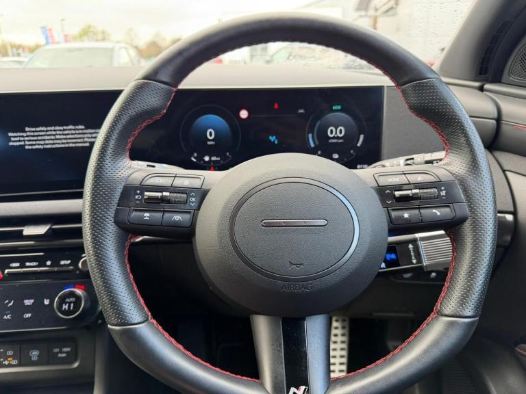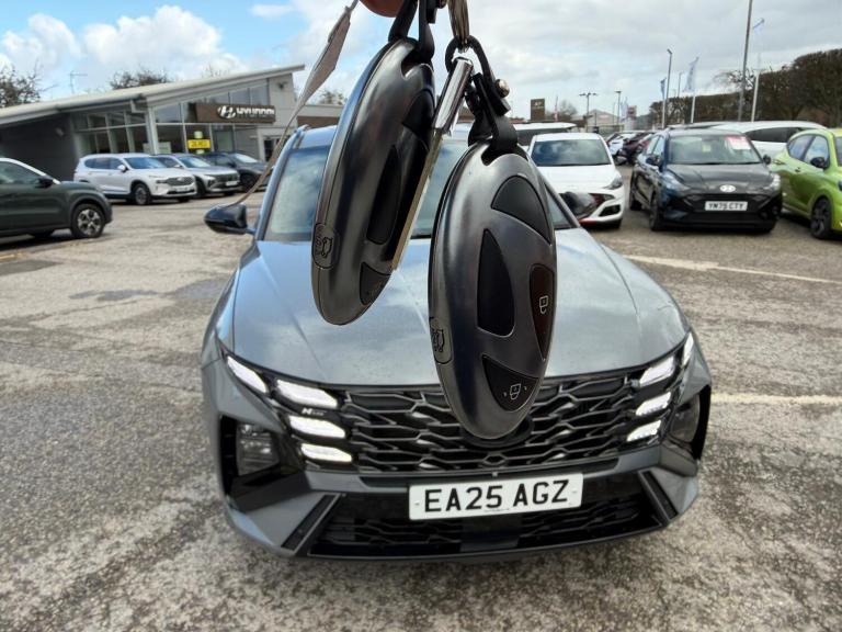 This 2025 Hyundai TUCSON T-GDi N Line presents a superb ownership proposition, having been cherished by just one owner from new and boasting a full service history. This stylish SUV features a 1.6 litre petrol hybrid engine, meeting Euro 6 emissions standards, and comes in the sporty N Line trim. Inside, you'll find comfortable heated front seats, a convenient wireless phone charging pad, and seamless integration with Android Auto for your phone. The N Line also includes advanced LED headlights for enhanced visibility and a smart key system for keyless entry and engine start stop.The TUCSON T-GDi N Line offers a compelling blend of performance and practicality. Its acceleration from 0 to 62mph in just 8.2 seconds demonstrates its responsive power, a figure that places it ahead of many comparable vehicles. Furthermore, its low insurance group rating means lower running costs, making it an economical choice. You'll also appreciate the generous boot space, providing ample room for shopping, luggage, or sports equipment, further enhancing its appeal as a versatile family vehicle.