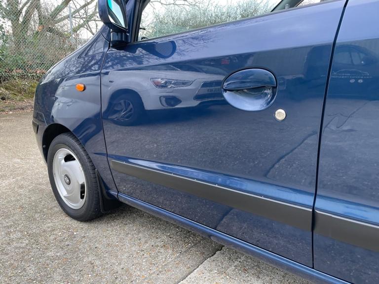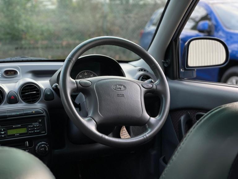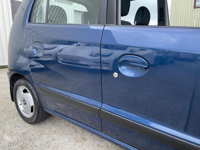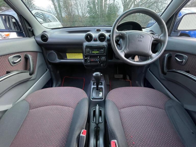 With an insanely low 31,702 miles, this dark blue Amica 1.1 in CDX Automatic guise represents Hyundai’s first proper hatchback, before the iconic i10 arrived. Cosseted by its local owner for the last 12 years, its lightweight, simple and surprisingly willing around town, it’s an easy and relaxing automatic to drive and it comes with service history in the file, with the most recent being a FULL service including new brake discs and pads carried out less than 50 miles ago, and comes complete with 2 keys. It benefits from an MOT with NO advisories to January 2027.Being the mighty TOP SPEC CDX, this Amica offers luxuries you don’t expect to say out loud – rear electric windows, electric mirrors and a proper radio/CD setup. The factory alloy wheels (the famous “triangle” design) give it real retro charm, and the deep blue paintwork suits the shape far better than it has any right to. Cheap to tax, insure and maintain, this is honest motoring with character.It has passed our pre-sale inspection and drives exactly as it should, with sharp brakes and a tidy interior for its age and mileage. Everything works as intended and it’s clearly been lightly used and sensibly owned. The only honest note is that the air conditioning isn’t blowing ice cold – think “cool breeze” rather than “Arctic blast”.We offer excellent finance rates from 8.9% APR — apply now at smallcarsdirect.co.uk for an instant decision. Please watch the HD video before enquiring and read our 350+ reviews to see why we were crowned the UK’s Best Car Dealer (sub-50 cars) at the 2024 Car Dealer Magazine Awards. Top prices paid for part exchange of high-quality, well-specified vehicles. A £450 admin fee applies if using your own finance broker – try us first, we cater for all credit profiles, we operate on a fixed price basis. Watch the HD video to appreciate its low mileage and great condition.