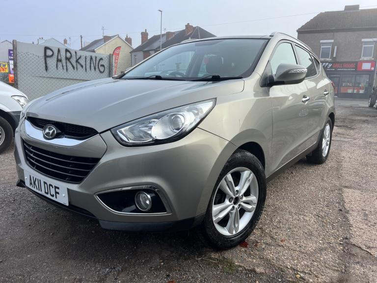 HYUNDAI IX35 1.7 CRDi Premium 5dr 2WD. 115,656 miles Diesel Silver Car. 12 months mot. Part service history. Front and rear heated seats. Panoramic roof. Sliding down. Navigation system. Reverse camera . Radio CD player. Alloy wheels.