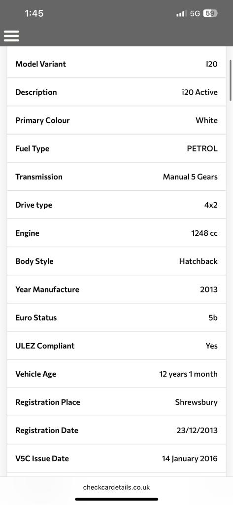 Posting for 7+ years2013 Hyundai i20 1.2 Active 3dr HATCHBACK Petrol Manual