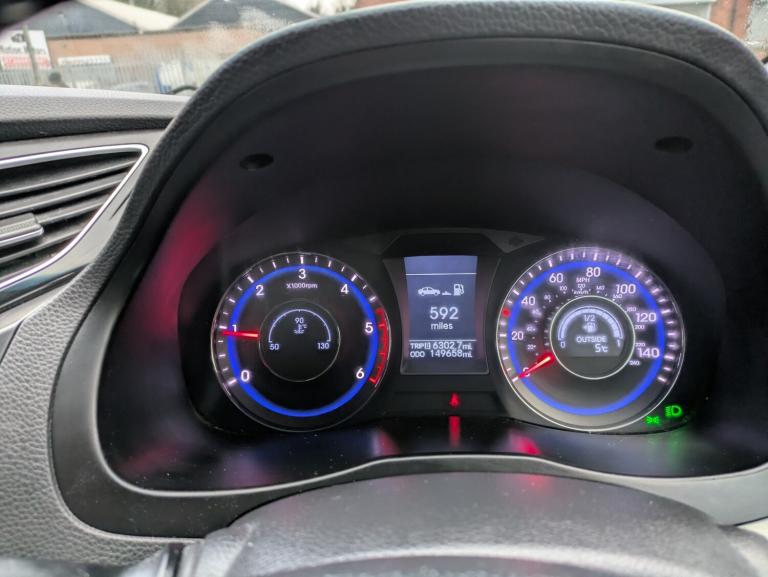 CAT NHyundaiModel140 Style Blue Drive CrdiModel DetailsCrdi 136 Blue Drive IsgStart/StopColour BlackVehicle Type CarBody Style SaloonFuel Type DieselEngine Size 1685 CcEuro Status 5bLondon ULEZNo. Not ULEZ compliantCompliantBHP134 BHPRegistered Date05 Sep 2013Miles 149kMOT 04.08.2026Tax £35/ year 6 owners 1 key Start and drive welcome any test!Thanks