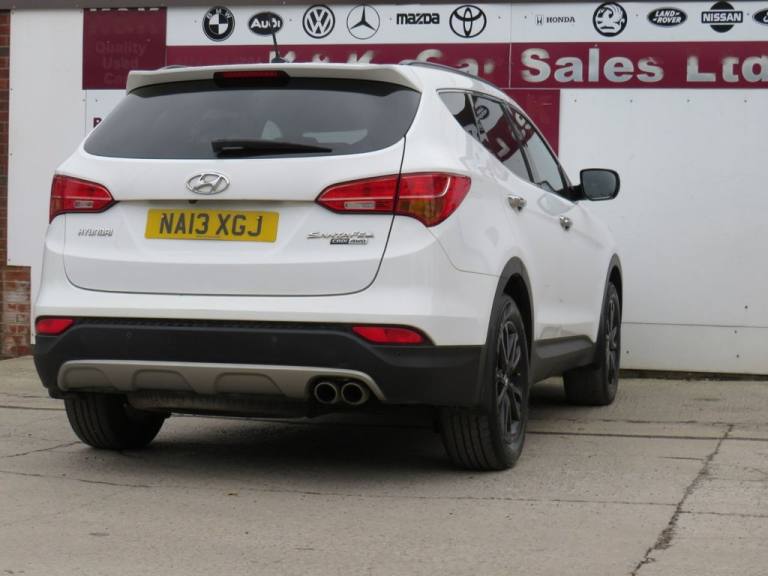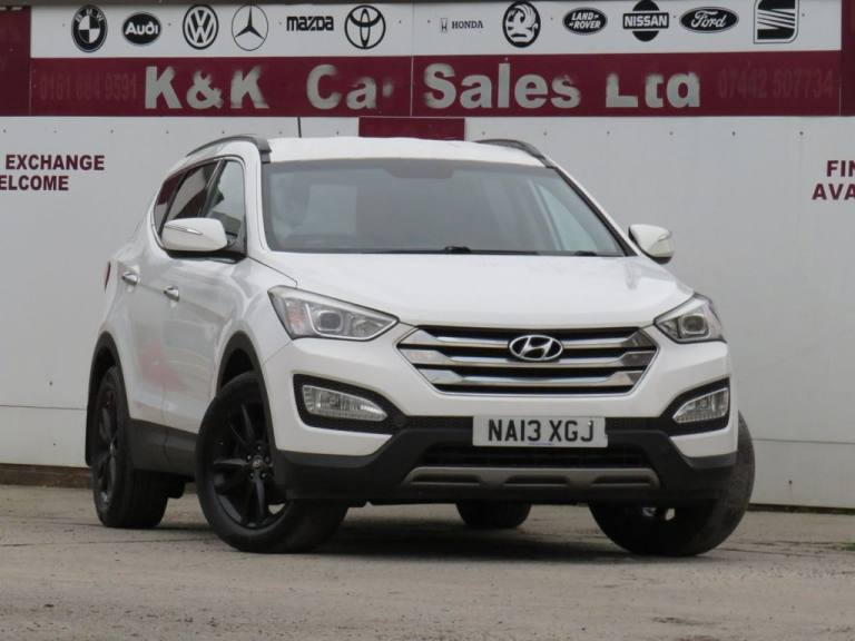 3 Stamps In The Service Book,Part And Labour Warranty,AA Breakdown Cover, This Hyundai Santa Fe CRDi Premium from 2013 boasts an impressive service history with its last service completed on 11th December 2025 at 106,475 miles, and an MOT valid until December 2026, offering peace of mind for its next owner. This capable seven seat, four wheel drive model is powered by a robust 2.2 litre diesel engine and features a generous towing weight of 2500 kg. Inside, you will find comfort and convenience with heated front seats, dual zone climate control, and rear parking sensors complemented by a rear view parking camera with a guidance system. Stay connected on the go with Bluetooth connectivity and voice recognition. The Premium trim level of this Santa Fe ensures a well equipped driving experience, and its low insurance group rating indicates it is more economical to run than many comparable vehicles. This versatile SUV is ideal for families needing ample space and for those requiring a vehicle with significant towing capability, all while benefiting from the reliability and features associated with the Hyundai brand..12V Power Outlet - Front x2, 12V Power Outlet - Luggage Compartment, 18in Alloy Wheels, ABS - Anti-Lock Brake System, AHS - Active Hood System, Air Conditioning - Rear, Airbags - Driver, Airbags - Drivers Knee, Airbags - Front Passenger, Airbags - Full Length Curtain, Airbags - Side, Alarm, Armrest - Front Centre with Storage Compartment, Armrest - Rear Centre, BAS - Brake Assist System, Bluetooth Connectivity with Voice Recognition, Childproof Rear Door Locks, Chrome Effect Interior Door Handles, Cigarette Lighter and Ashtray, Climate Control - Dual Zone, Cruise Control with Speed Limiter, Cup Holders - Front, Cup Holders - Rear, DBC - Downhill Brake Control, Daytime Running Lights, Deadlocks, Door Handles - Chrome Effect - Exterior, Door Mirrors - Electrically Folding and Heated with Puddle Lights, Door Mirrors with Integrated Indicators - Body Coloured, Driver Seat Height Adjustment, EBD - Electronic Brake Force Distribution, ESP - Electronic Stability Programme, ESS - Emergency Stop Signal, Electric Parking Brake, Flex Steering, Front Door Pockets, Front Fog Lights, Front Map Reading Lights, Front Passenger Airbag De-Activation Switch, Front Seat Back Pockets, Gear Knob - Leather, Glove Compartment Lockable, Glove Compartment with Cooling Function and Illumination, HAC - Hill-Start Assist Control, Head Restraints - Front and Rear with Vertical Adjustment, Headlights - Follow Me Home Function, Headlights - Halogen, Heated Front Seats, ISOFIX Child Seat Anchorage Points - Rear - Outer Rear, Ignition Socket Illumination, Instrument Panel Brightness Control, Interior Trim - Insert Film Effect Fascia, Locking Wheel Nuts, Luggage Compartment Light, Luggage Compartment with Under-Floor Storage Tray, Luggage Hooks, Luggage Net, One-Touch Indicators, Parking Sensors - Rear, Power Assisted Steering, Privacy Glass, RDS Radio-CD Player with MP3 Compatibility, Radiator Grille - Gloss Black and Chrome, Rain Sensing Front Wipers, Rear Door Pockets, Rear Spoiler with High-Mounted Brake Light, Rear View Parking Camera with Parking Guidance System, Remote Central Locking, Roof Rails, Satellite Navigation - Touchscreen with TMC, Seatbelt Reminder, Seats - 50-50 Flat Folding Third Row, Seats - Drivers Lumbar Adjustment, Side Impact Bars, Skid Plates - Front and Rear, Spare Wheel - Full Size Alloy, Speakers x6, Speed Sensitive Automatic Door Locking, Split Folding Rear Seats - 60-40, Steering Column - Height and Reach Adjustable, Steering Wheel - Leather, Steering Wheel Au