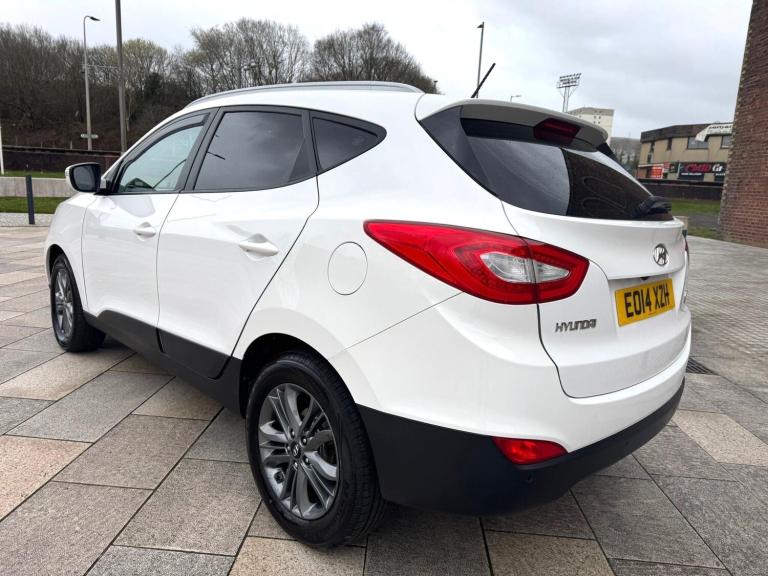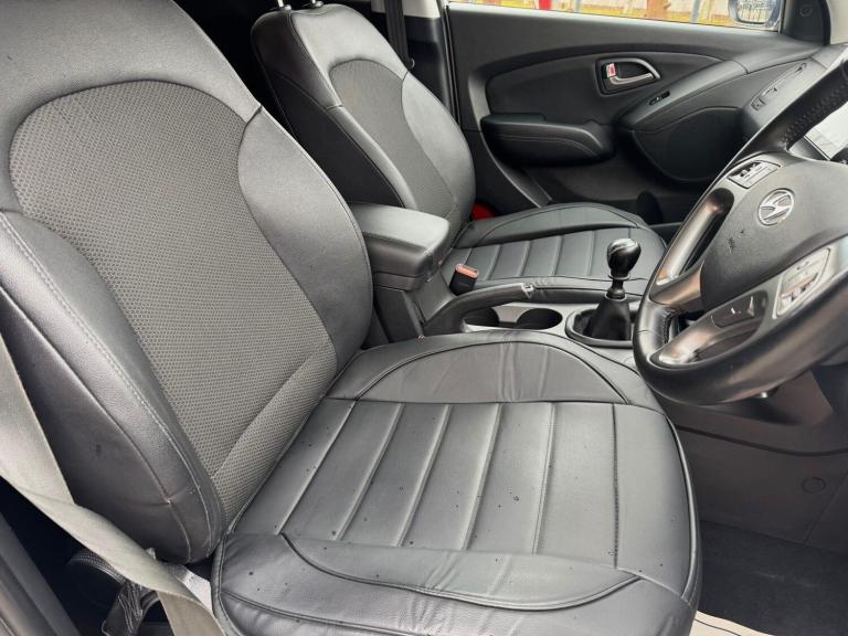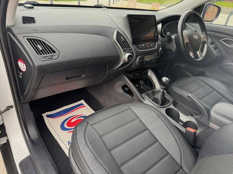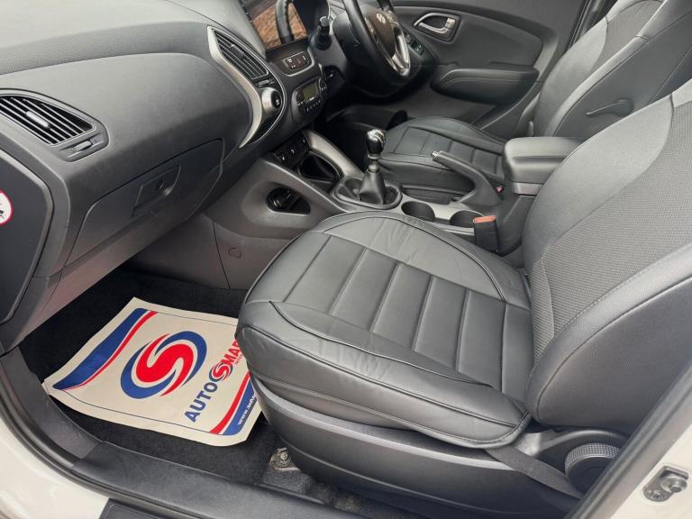 This 2014 Hyundai ix35 CRDi SE presents a compelling proposition with its remarkably low mileage for its age, having covered just 90,414 miles. This well appointed diesel model features a 1.7 litre engine and comes equipped with rear parking sensors to aid manoeuvring, dual zone climate control with a humidity sensor and ioniser for personalised comfort, and automatic headlights for convenience. Inside, you will appreciate the comfort of both heated front and rear seats, ensuring a pleasant journey for all occupants.The Hyundai ix35 CRDi SE stands out with its excellent fuel economy, achieving an impressive 54 miles per gallon, which, alongside its low CO2 emissions, indicates a more economical and environmentally conscious choice compared to many similar vehicles. Further enhancing its appeal are its generous boot space, offering ample room for luggage or shopping, and its low insurance group rating, suggesting lower running costs./ APPLE CAR PLAY / BLUETOOTH / REAR REVERSE CAMERA / GREAT LOOKING VEHICLE / 2 KEYS / FULL MOT / SERVICED