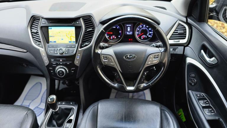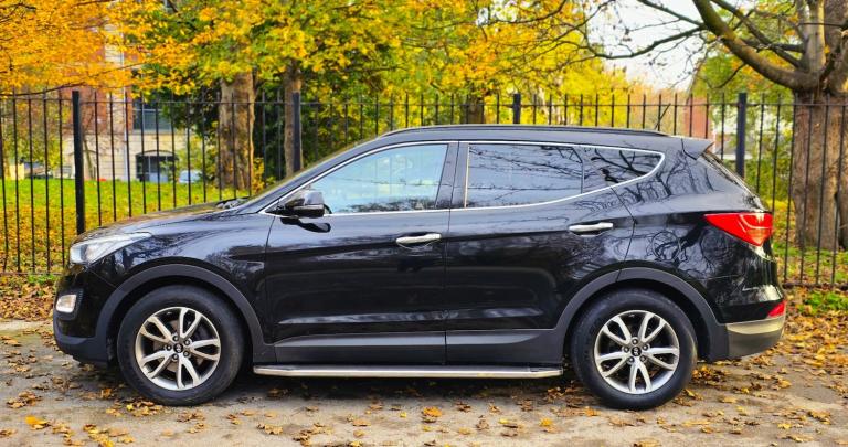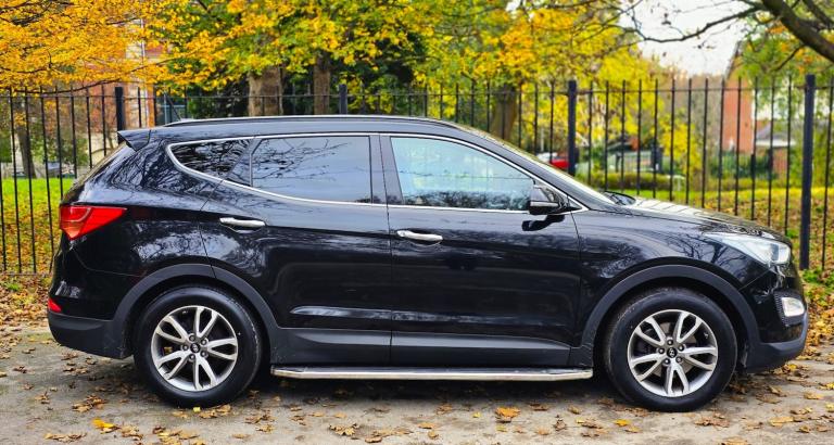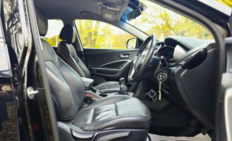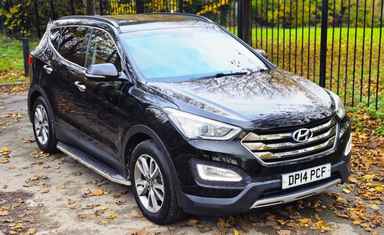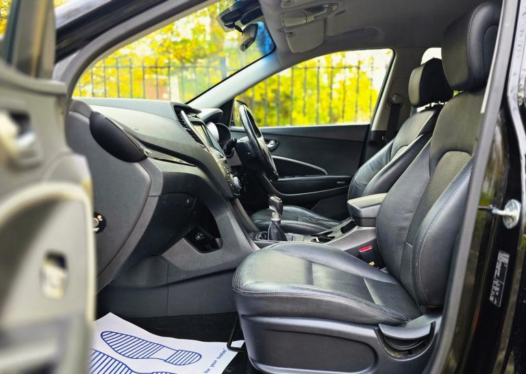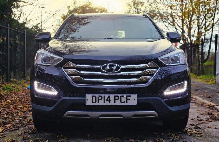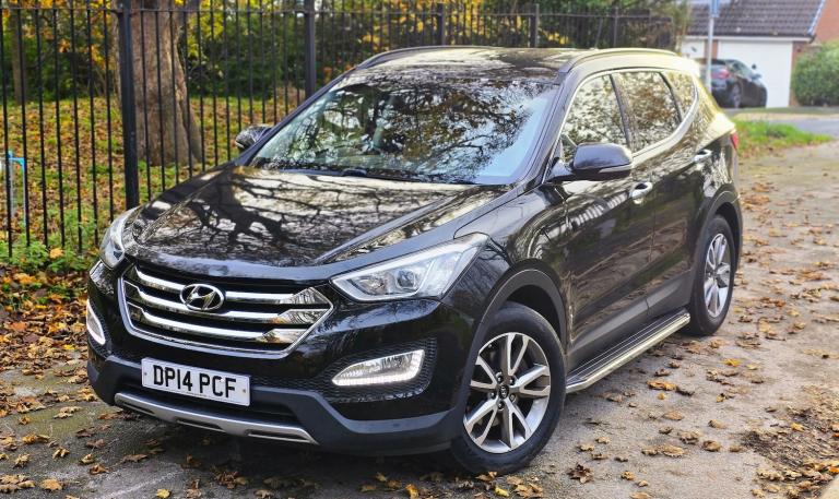 2014 HYUNDAI SANTA FE 2.2 CRDi PREMIUM 7 SEATER 6 SPEED MANUAL + SUPERB PRACTICAL AND STYLISH SUV FINISHED IN DIAMOND BLACK METALLIC + 7 BLACK LEATHER SEATS + CLIMATE CONTROL + WIDESCREEN NAV/MEDIA + 18 INCH MULTISPOKE ALLOYS WHEELS + SIDE SKIRTS + LED HEADLIGHTS + FRONT FOGS + CRUISE CONTROL + ELECTRIC FOLDING MIRRORS + ROOF RAILS + PRIVACY GLASS + CLIAMTE CONTROL + 2 FORMER KEEPERS + 2 KEYS + MAIN DEALER HISTORY + MOT UNTIL JULY 2026 + ANY TRIAL/INSPECTION WELCOME + NATIONWIDE DELIVERY AVAILABLE (Please ask for a quote) ++ £7990 ++ (Whilst every care is taken in providing an accurate description, errors may still occur. Please check details that are important to you before buying. Thank you).