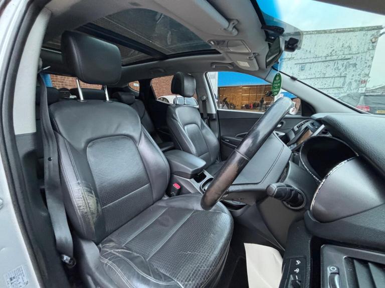 This Hyundai Santa Fe CRDi Premium SE from 2014 boasts a clear vehicle history and has had only one owner, offering excellent peace of mind. This well maintained four wheel drive model features a powerful 2.2 litre diesel engine and comfortable seating for seven occupants. Inside, you will find a range of desirable features including Xenon headlights for improved visibility, a panoramic opening sunroof to let in natural light, and a rear view parking camera with guidance system to assist with manoeuvring. For added comfort, it also includes rear air conditioning and heated front seats.The large boot space in this Santa Fe makes it a practical choice for families or those needing extra room for luggage or equipment. Its low insurance group rating further enhances its appeal, suggesting lower running costs compared to similar vehicles. This combination of a single owner, clear history, spacious interior, and convenient features makes this Hyundai Santa Fe a compelling option.Fantastic service history, One owner from new.MOT Till 28/08/26.Reverse Camera, Sat Nav, electric sunroof, heated seats, leather interior, 7 seats and much much more. £6700 NO OFFERS.EXPECT REGULAR WEAR AND TEAR OF A 2014 with 116,000 plus miles.
