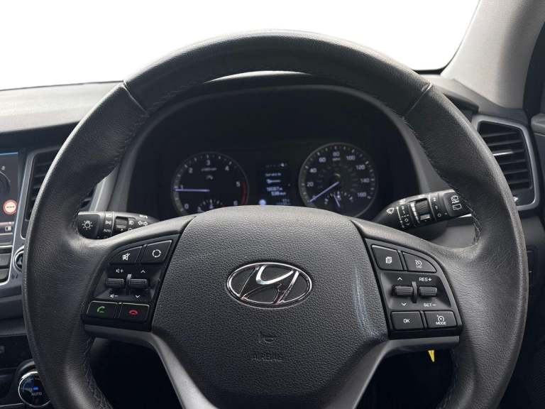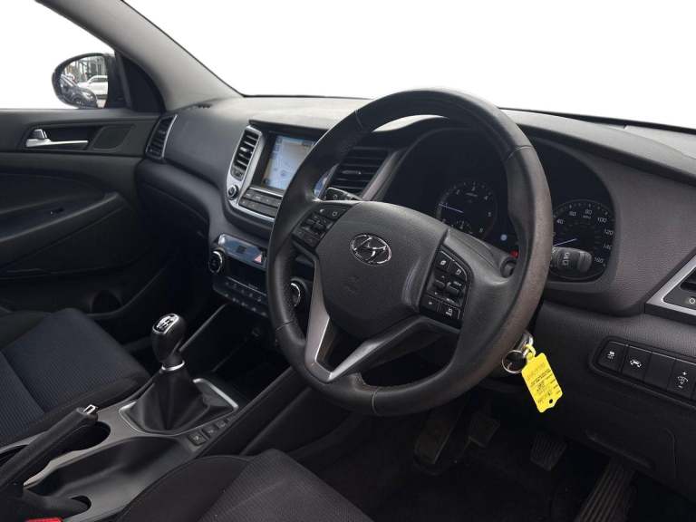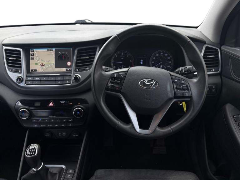 .If youre after a practical, stylish SUV that delivers comfort, efficiency, and serious value for money, this Hyundai Tucson 1.7 CRDi Blue Drive SE Nav 2WD is the one to beat. Finished in a smart grey, this 65-plate Tucson has covered just 73,100 milesperfectly in line with its ageand still feels every bit the modern family SUV. Under the bonnet sits a reliable 1.7 CRDi diesel engine producing around 114bhp, offering a smooth, refined drive with more than enough power for everyday use. Whether you're commuting, doing the school run, or heading out on long motorway journeys, it handles it all with ease. And lets talk economythis is where it really shines. With claimed figures of up to 61 mpg, youll enjoy fewer fuel stops and lower running costs, making it ideal for both city and long-distance driving. Inside, the SE Nav trim means youre getting a well-equipped cabin designed for comfort and convenience. Youll benefit from built-in satellite navigation, touchscreen infotainment, Bluetooth connectivity, cruise control, and a spacious interior that easily accommodates five adults. In fact, its known for its excellent legroom and practicality, making it a superb choice for families or anyone needing extra space. On the road, the Tucson delivers a comfortable, composed ride with a raised driving position that gives you confidence and visibilityexactly what you want from an SUV. Its no surprise this model quickly became one of Hyundais fastest-selling vehicles in the UK. In short, this is a dependable, economical, and well-specced SUV that ticks all the boxesstyle, space, and sensible running costs. Get behind the wheel, and youll see why the Tucson is such a popular choice..8'' touchscreen DVD colour navigation, Bluetooth system, Cruise control + speed limiter, Digital clock, Emergency stop signalling system, Flex Steer variable steering settings, Lane keep assist, PAS, Rear parking sensor, Rev counter, Reversing camera, Tailgate open warning light, Trip computer, Trip odometer, Water temperature gauge, Vehicle Stability Control (VSC), 6 speakers, DAB Digital radio, Steering wheel mounted audio/phone controls, USB/aux input socket, Automatic headlights with dusk sensor, Black bodyside mouldings, Body colour bumpers, Body colour door mirrors and handles, Electric front/rear windows with drivers one touch/anti-trap, Electric heated door mirrors, Electrochrome rear view mirror + compass, Folding door mirrors, Follow me home headlights, Front fog lights,