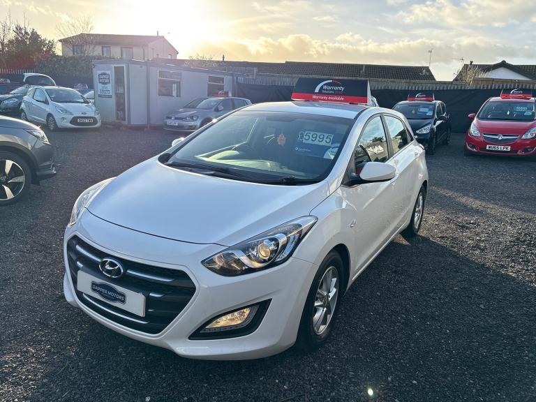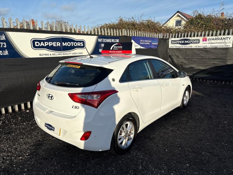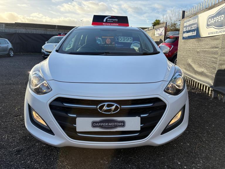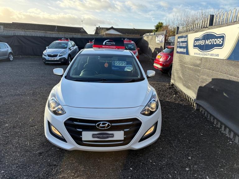 HYUNDAI i30 1.6 CRDi 110PS Blue Drive SE in excellent condition inside and out, only 71k miles with just 2 former keepers, great service history ( 9 stamps) and only £20 a year road tax. lovely modern specification including speed limiter, radar parking sensors, refrigerated glovebox, stop/start technology, multifunction steering wheel, Bluetooth telephone and music streaming, USB and Aux connection ports, alloy wheels and remote central locking. \n\nAs with all our cars, this vehicle comes with a FRESH 12 MONTH MOT with ALL advisory work completed, fresh oil and filter service, 3 months parts and labour cover as standard and breakdown cover. Part exchange welcome, credit and debit cards accepted, free local delivery (25 miles)\n\nVEHICLE REG - EN66 RCO - \n\nCOMPETATIVE FINANCE AVAILABLE \n\nClick the link below now to try our free finance calculator and personalise the payment options that best work for you!\n\nhttps://dappermotors.co.uk/finance\n\nThis vehicle comes with:\nFour speakers, Audio system with CD player that reads MP3 CDs; radio receives AM/FM and RDS, Remote controlled remote boot/hatch/rear door release, External temperature, Computer includes average speed, average fuel consumption, instantaneous fuel consumption and range for remaining fuel, Alloy look trim on dashboard, alloy look trim on centre console and alloy & leather gearknob, Central door locking: Operated by remote Includes dead bolt, Seat upholstery: cloth and cloth, Leather covered multi-function steering wheel with tilt adjustment and telescopic adjustment, Refrigerated storage compartment in glove compartment, Ventilation system with air filter, Air conditioning, Front electric windows with one-touch on one window, rear electric windows, Floor console, Voice activating system includes phone, Fixed storage box in the boot, Bluetooth includes phone connection and music streaming, Lifting gate rear door, Engine start/stop, Connections for USB (front) and auxiliary audio devices (front), Body colour power door mirrors; heated, Space saver steel spare wheel, Rear radar-type parking distance sensors, Rear radar-type parking distance sensors, Halogen low beam halogen high beam headlights with ellipsoidal lenses, Front and rear side curtain airbags, Drivers airbag, passengers airbag with de-activation switch, Low tyre pressure indicator, Automatic hazard lights, Anti-theft protection with interior monitoring, Front-wheel drive, Turbo-charger, Fuel system: common rail diesel, Power steering: type speed proportional, Particle filter system, Speed limiter, Insurance, Rigid cargo area cover/rear parcel shelf