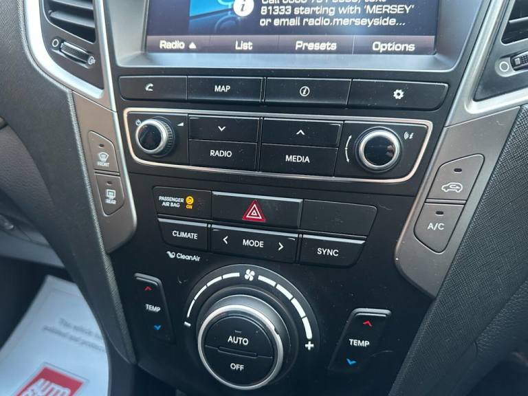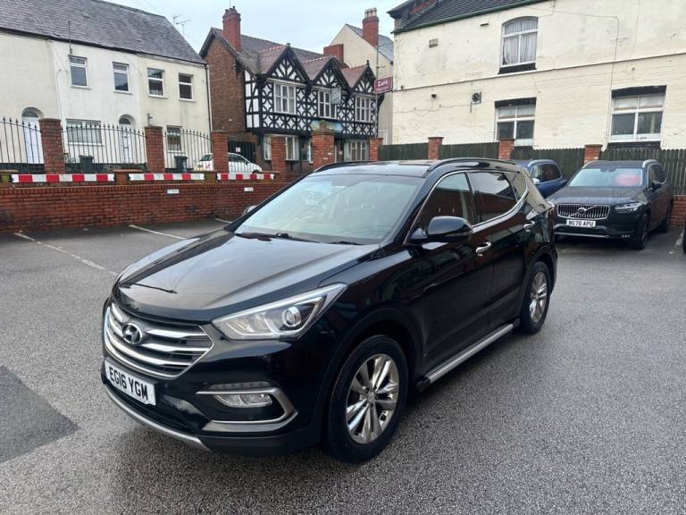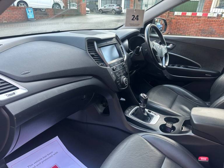 Bluetooth : Satellite Navigation system : DAB Radio : Quality full leather upholstery : Electric Drivers seat : Heated front seats : Isofix fittings : Air-conditioning : Cruise control/Speed limiter : Auto headlights/wipers : Hyundai Hill-Descent control system : Rear view camera : Front and rear parking sensors : Cargo/Load cover : Rear privacy glass : Roof-Rails : Side-Steps : 18-inch alloy wheels : Stylish Phantom black paintwork : Please go to [Website URL removed] to see more vehicles like this.................................... This 2016 Hyundai Santa Fe CRDi Premium offers excellent peace of mind with its MOT valid until May 2026. This Four Wheel Drive model is equipped with a robust 2.2L Diesel Engine and meets Euro 6 emission standards. It boasts a generous towing weight of 2500 kg, making it a capable companion for various needs. The Premium trim level includes desirable features such as front and rear parking sensors with parking assistance, dual zone climate control for personalised comfort, and heated rear seats for those colder journeys. Stay connected on the go with Bluetooth connectivity, and enjoy the convenience of automatic headlights. Furthermore, this Santa Fe falls into a low insurance group, suggesting it could be more economical to own compared to similar vehicles. ................................................We are Trading Standards approved, all cars are HPI clear, certain cars may be multiple use owner vehicles - please ask for full details. We carry out a comprehensive PDI inspection + service & MOT if required. We have warranty packages to provide up to 3 years warranty cover + Part Exchange your car + Low Finance APR% rates + Open 6 days a week for viewings & test drives (please contact us to check availability prior to travelling) + Please visit our website to see up to 100 photos and a video of our vehicles..12V Power Outlet - Front - Rear Consoles and Luggage Compartment, 18in Alloy Wheels, 7 Airbags - Front - Front Side - Drivers Knee, ABS - Anti-Lock Brake System, Active Head Restraints, Adjustable Intermittent Front Windscreen Wipers with Aero Wiper Blade, Armrest - Front Centre with Storage Compartment, Armrest - Rear Centre with Cup Holders, Automatic De-Fog System for Front Windscreen, Automatic Dimming Rear View Mirror with Compass, Automatic Windscreen Wipers with Rain Sensor, BAS - Brake Assist System, Bluetooth Connectivity, Bottle Holders - Front Centre Console - Front and Rear Doors, Brake Light - LED, Childproof Rear Door Locks, Chrome Effect Interior Door Handles, Climate Control - Dual Zone, Cruise Control with Speed Limiter, Cup Holders - Front, Curtain Airbag Rollover Sensor, DAB Digital Radio, Daytime Running Lights - LED, DBC - Downhill Brake Control, Deadlocks, Door Handles - Chrome Effect - Exterior, Door Mirrors - Electrically Folding and Heated with Puddle Lights, Door Mirrors Automatic Reverse Tilt Function, Door Mirrors with Integrated Indicators - Body Coloured, Drivers Seat Height Adjustment - Electric, EBD - Electronic Brake Force Distribution, ESP - Electronic Stability Programme, ESS - Emergency Stop Signal, Flex Steering, Front and Rear Door Pockets, Front and Rear Fog Lights, Front Map Reading Lights and Sunglasses Holder, Front Passenger Airbag De-Activation Switch, Front Seat Back Pockets, Front Seatbelt Pre-Tensioners, Front Static Cornering Lights, Front Windscreen Wiper De-Icer, Glove Compartment with Cooling Function - Illumination and Lockable, Grab Handles x3, HAC - Hill-Start Assist Control, Head Restraints - Vertical and Horizontal Adjustment, Headlights - Automatic, Headlights - Follow Me Home Function, Headlights - Halogen, Heated Front Seats, Heated Rear Seats, Heated Rear Windscreen with Washer and Wiper, Height Adjustable Front Seatbelts, Ignition Socket Illumination, Immobiliser, Impact Sensing Auto Door Unlocking, Instrument Panel Brightness Control, ISOFIX Child Seat Anchorage Points - Rear - Outer Rear, Leather - Black, Leather Wrapped Steering Wheel and Gear Knob, Luggage Compartment Light, Luggage Compartment with Under-Floor Storage Tray, Motor Driven Power Steering - MDPS, One-Touch Indicators, Parking Sensors - Front and Rear, Phantom Black, Premium Sound System, Privacy Glass, Radiator Grille - Chrome, Rear Seats - Reclining Manual, Rear Seats - Second Row - One Touch Folding Handle, Rear Seats - Slidin