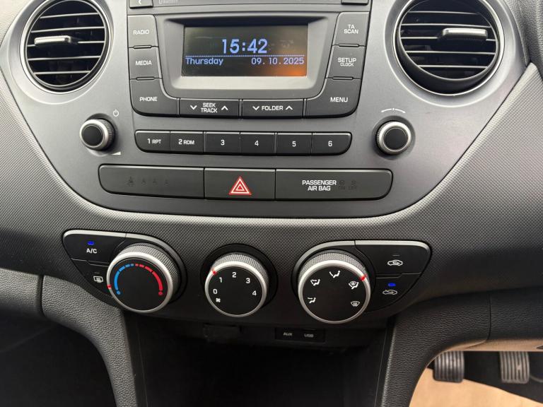 2017 HYUNDAI I10 HATCHBACK 1.2 SE 5dr 58800 Miles with Service History, Polar White with Black Cloth Interior, Bluetooth system, Cruise control + speed limiter, PAS, Vehicle Stability Control (VSC), DAB Digital radio, RDS radio with MP3 player, Steering wheel mounted controls, USB/aux input socket, Body coloured bumpers, Body coloured door mirrors, Daytime running lights, Electric rear windows, Electrically adjustable and heated door mirrors, Rear spoiler, Electric front windows, 12v power outlet - front, 60/40 split folding flat to floor rear seats, Air conditioning, Driver's seat height adjustment, Height adjustable steering column, Isofix child seat preparation, Front and rear bottle holders, ABS/EBD, Curtain airbags, Driver/Front Passenger airbags, Front side airbags, Passenger airbag deactivate switch, Immobiliser, Remote central locking, Speed sensitive auto door lockingSpace saver spare wheel, £35 Road Tax