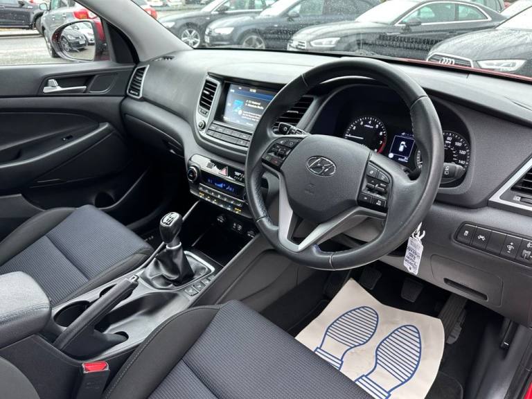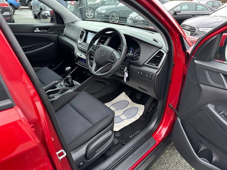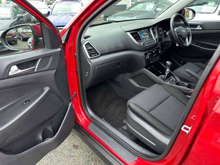 Southwest Motor Company are excited to be offering for this sale, this very well presented, 2-owner, 2017(67) Hyundai Tucson GDI Blue Drive SE Nav SUV. Finished in Fiery Red Pearl Metallic with dark interior and 17-inch alloy wheels in silver, its a great-looking example. Beautifully well-kept throughout with a full service record, there can be no bout that this vehicle has been exceptionally well-cared-for. A brilliant-sized cabin with ISO-Fix childseat anchors and a generous boot ensure these vehicles work brilliantly well as a family SUV. Great specifications, including satellite navigation, Bluetooth, DAB radio, multimedia connectivity, reversing camera, parking sensors, dual-zone climate control, heated seats, electrically operated and folding wing mirrors, multifunction steering wheel, and cruise control with lane assist, ensure this Tucson is a beautifully well-equipped vehicle to drive and travel in. The 1.6L Petrol engine offers great performance and economy, which is delivered through a 6-speed manual transmission. With an impressive 52 mpg achievable on run, together with this vehicle being ULEZ comoliant ensures that running costs are fantastically low. A very well kept 2-owner example with full service history, great specifications and brilliant all-round economy. Supplied serviced with a long MOT and 3-month premium warranty (extendable if desired). Part-exchange welcome. All our vehicles are HPI clear. All major debit cards are accepted. Great finance packages are available to suit all customer profiles. The vehicle specification displayed may not be exact for this vehicle. Please contact us to confirm the precise specifications. Southwest Motor Company Premier Used Car Sales Tavistock Devon.12V Power Outlet - Front Console and Luggage Compartment, 17in Alloy Wheels, 6 Airbags - Front - Front Seat Side and Curtain, 6 Speakers - 2 Tweeters - 2 Front Door - 2 Rear Door, 8in Touchscreen Satellite Navigation with Traffic Messaging Channel - Reversing Camera - Mapcare and Tom Tom LIVE Services, ABS - Anti-Lock Brake System with EBD - Electronic Brake-Force Distribution, Active Bonnet System, Adjustable Head Restraints, Adjustable Intermittent Front Windscreen Wipers with Aero Wiper Blade, Armrest - Front with Storage, Armrest - Rear Centre with Cup Holders, Automatic De-Fog System for Front Windscreen, Automatic Headlights with Dusk Sensor, BAS - Brake Assist System, Bluetooth Connectivity, Body Colour Bumpers, Bottle Holders - Front Centre Console and Door, Childproof Rear Door Locks, Climate Control - Dual Zone with Ioniser, Courtesy Light - Front Door, Cruise Control with Speed Limiter, Curtain Airbag Rollover Sensor, DBC - Downhill Brake Control, Daytime Running Lights - LED, Deadlocks, Digital Clock, Door Mirrors - Body Coloured, Door Mirrors - Electric Adjustment and Heated with Power Folding Function, Driver Seat Height Adjustment, ESP - Electronic Stability Programme, ESS - Emergency Stop Signal, Electric Windows - Front and Rear with Drivers Anti-Trap and One-Touch Up-Down Control, Exterior Door Handles - Body Coloured, Flex Steering, Front Fog Lights, Front Map Reading Lights, Front Passenger Airbag De-Activation Switch, Glove Compartment with Cooling Function and Illumination, HAC - Hill-Start Assist Control, Headlights - Follow Me Home Function, Heated Front Seats, Height Adjustable Front Seatbelts, ISOFIX Child Seat Anchorage Points - Rear - Outer Rear, Immobiliser, Interior Door Handles - Chrome Effect, Interior Light - Luggage Compartment, Interior Trim - Soft Touch - Door Top and Centre Trim, Lane Departure Warning System with Lane Keeping Assist, Leather Wrapped Steering Wheel and Gear Knob, Locking Wheel Nuts, Luggage Hooks, Luggage Net, Parking Sensors - Rear, Perimeter Alarm, Positioning Lights LED, Power Assisted Steering, Projection Headlights with Static Cornering Lights, Rear Lights - LED, Rear Spoiler with Integral LED Brake Light, Remote Central Locking, Retractable Load Cover, Roof Rails - Silver, Seatbelt Anchor Pre-Tensioners - Front, Seatbelt Reminder - Front and Rear, Seats - 60-40 Split Folding Rear, Seats - Drivers Electric Lumbar Support, Seats - Rear Reclining, Side Body Moulding - Black, Skid Plates - Front - Sil
