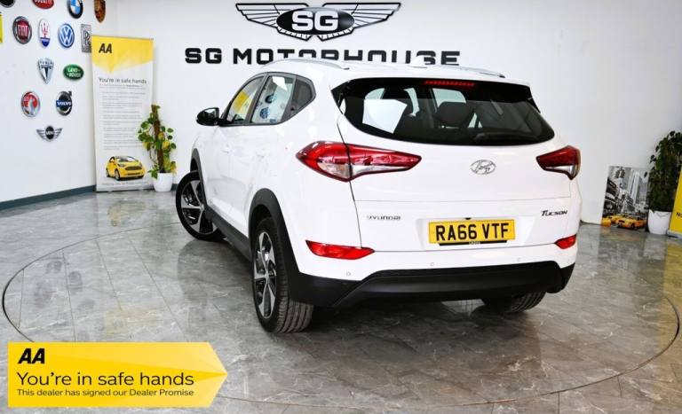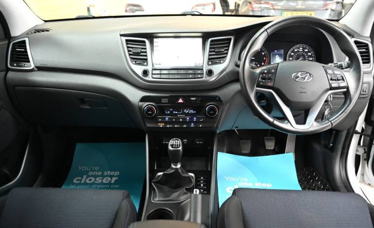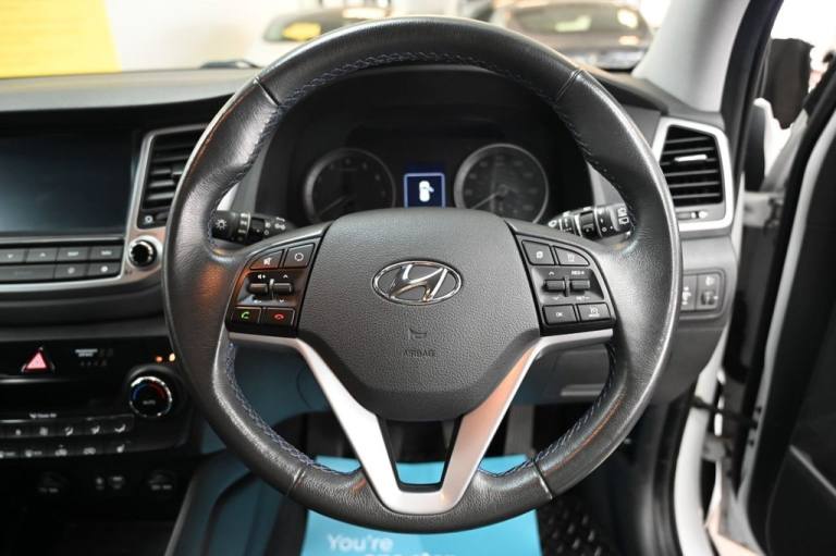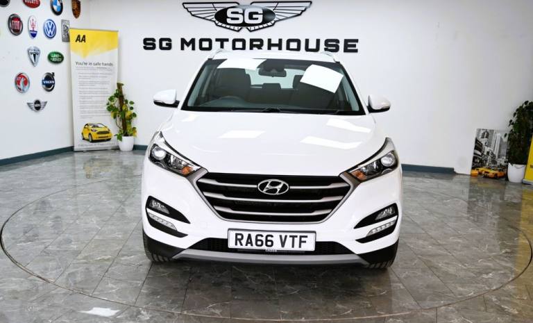 TOP SPEC - HYUNDAI TUCSON 1.6 GDi SE NAV / ULEZ SERVICE HISTORY + 2 CAREFUL OWNERS FROM NEW + APPLE/ANDROID CARPLAY + REVERSING CAMERA + HEATED SEATS + APPLE/ANDROID CARPLAY + SATELLITE NAVIGATION + PARKING AID + LANE ASSIST + HYUNDAI MULTIMEDIA SCREEN / BLUETOOTH / BT AUDIO / AUX / DAB RADIO + ECO FRIENDLY + START/STOP TECHNOLOGY + STEERING CONTROLS + CRUISE CONTROL + 6 SPEED MANUAL GEARBOX + AUTO LIGHTS + ALLOY WHEELS + ALL ELECTRIC WINDOWS + ELECTRIC FOLDING DOOR MIRRORS + REAR HEATED SCREEN FRESH SERVICE + 12 MONTHS MOT CHECKED & INSPECTED  FREE 6 MONTHS NATIONWIDE WARRANTY (ALL MECHANICAL & ELECTRICAL - PARTS AND LABOUR INCLUDED) +++ FREE 12 MONTHS AA BREAKDOWN COVER 0% DEPOSIT FINANCE AVAILABLE ALL HPI CLEAR +++ ANY P/X WELCOME. Road Tax Opt, We accept all major CREDIT & DEBIT Cards, 5 Days Drive Away Insurance OPTIONAL,Located 5 Mins from Hoddesdon OR Broxbourne train station, 21 High Street, EN11 8SX RESERVE ANY CAR FOR ONLY £100 - DEPOSIT FULLY REFUNDABLE SUBJECT TO VIEWING .12V Power Outlet - Front Console and Luggage Compartment, 17in Alloy Wheels, 6 Airbags - Front - Front Seat Side and Curtain, 6 Speakers - 2 Tweeters - 2 Front Door - 2 Rear Door, 8in Touchscreen Satellite Navigation with Traffic Messaging Channel - Reversing Camera - Mapcare and Tom Tom LIVE Services, ABS - Anti-Lock Brake System with EBD - Electronic Brake-Force Distribution, Active Bonnet System, Adjustable Head Restraints, Adjustable Intermittent Front Windscreen Wipers with Aero Wiper Blade, Armrest - Front with Storage, Armrest - Rear Centre with Cup Holders, Automatic De-Fog System for Front Windscreen, Automatic Headlights with Dusk Sensor, BAS - Brake Assist System, Bluetooth Connectivity, Body Colour Bumpers, Bottle Holders - Front Centre Console and Door, Childproof Rear Door Locks, Climate Control - Dual Zone with Ioniser, Courtesy Light - Front Door, Cruise Control with Speed Limiter, Curtain Airbag Rollover Sensor, Daytime Running Lights - LED, DBC - Downhill Brake Control, Deadlocks, Digital Clock, Door Mirrors - Body Coloured, Door Mirrors - Electric Adjustment and Heated with Power Folding Function, Driver Seat Height Adjustment, Electric Windows - Front and Rear with Drivers Anti-Trap and One-Touch Up-Down Control, ESP - Electronic Stability Programme, ESS - Emergency Stop Signal, Exterior Door Handles - Body Coloured, Flex Steering, Front Fog Lights, Front Map Reading Lights, Front Passenger Airbag De-Activation Switch, Glove Compartment with Cooling Function and Illumination, HAC - Hill-Start Assist Control, Headlights - Follow Me Home Function, Heated Front Seats, Height Adjustable Front Seatbelts, Immobiliser, Interior Door Handles - Chrome Effect, Interior Light - Luggage Compartment, Interior Trim - Soft Touch - Door Top and Centre Trim, ISOFIX Child Seat Anchorage Points - Rear - Outer Rear, Lane Departure Warning System with Lane Keeping Assist, Leather Wrapped Steering Wheel and Gear Knob, Locking Wheel Nuts, Luggage Hooks, Luggage Net, Parking Sensors - Rear, Perimeter Alarm, Polar White, Positioning Lights LED, Power Assisted Steering, Projection Headlights with Static Cornering Lights, Rear Lights - LED, Rear Spoiler with Integral LED Brake Light, Remote Central Locking, Retractable Load Cover, Roof Rails - Silver, Seatbelt Anchor Pre-Tensioners - Front, Seatbelt Reminder - Front and Rear, Seats - 60-40 Split Folding Rear, Seats - Drivers Electric Lumbar Support, Seats - Rear Reclining, Side Body Moulding - Black, Skid Plates