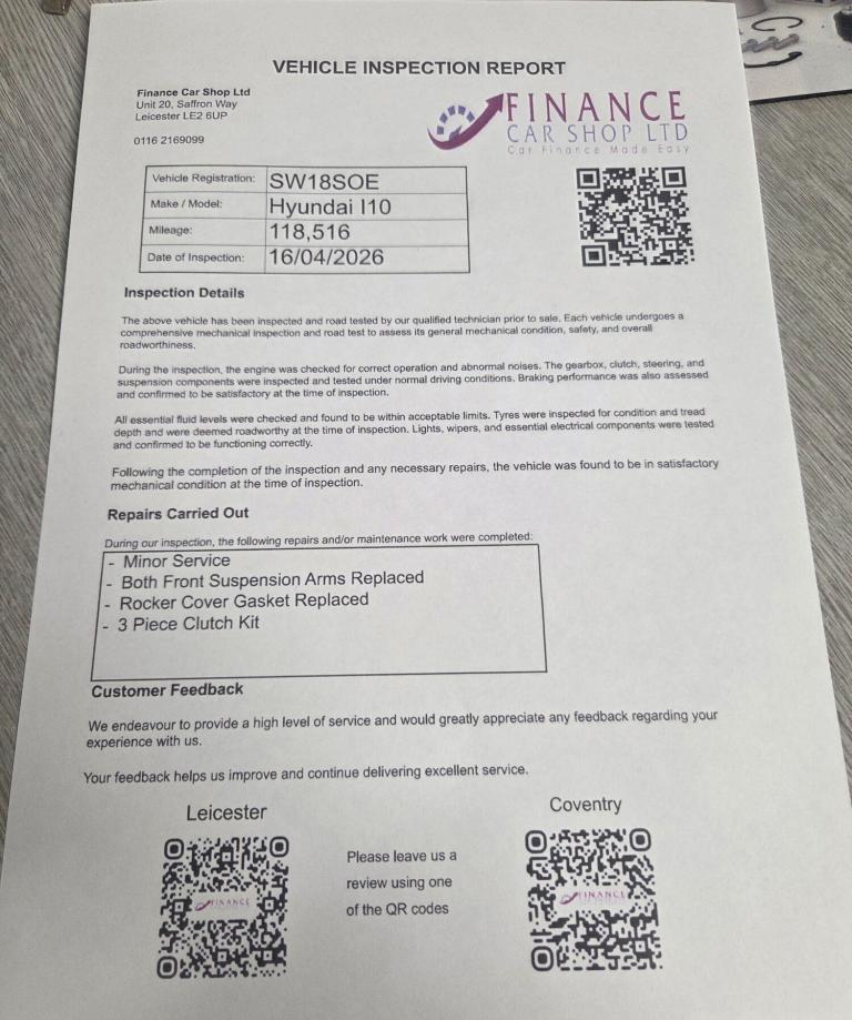 +SERVICE HISTORY + JUST SERVICED + SAT NAV + 1 FORMER KEEPERA great example of the Hyundai i10 GO! SE, offering excellent fuel economy, modern features, and surprising interior space for a compact hatchback. Powered by a 1.0 litre petrol engine, this car is smooth, economical, and ideal for city driving or as a first car.Built by Hyundai Motor Company, the i10 is known for its reliability, low running costs, and practicality.Key Features:1.0 Petrol Engine – Economical and easy to driveGO! SE Trim – Well equipped with modern features5-Door Hatchback – Practical and convenient accessEuro 6 Compliant – Low emissions and ULEZ friendlyCompact Size – Perfect for city driving and easy parkingComfortable & Practical InteriorWhy Choose the Hyundai i10?Very economical to run and insureReliable and practical city carIdeal for first-time drivers or commutersComfortable with great visibility + 6 MONTHS WARRANTY INCLUDED + 6 MONTHS BREAKDOWN COVER + EXTENDED WARRANTY AVAILABLE + FINANCE OPTIONS AVAILABLE UPON REQUEST + DELIVERY CAN ONLY BE ARRANGED ONCE THE VEHICLE HAS BEEN VIEWED & INSPECTED IN PERSON AT OUR PREMISES + PHOTO ID IS REQUIRED FOR ALL VIEWINGS AND TEST DRIVES + WE CAN BE REACHED VIA WHATSAPP ON [Phone number removed] – FEEL FREE TO MESSAGE US + PLEASE NOTE, THE PRICE IS FIXED ON THIS VEHICLE. KINDLY BE AWARE OF THIS PRIOR TO ARRANGING A VIEWING + WE HAVE OVER 50 VEHICLES IN STOCK. AS NOT ALL VEHICLES ARE HELD ON SITE, PLEASE ENSURE YOU CALL IN ADVANCE BEFORE MAKING YOUR JOURNEY + BANK TRANSFER ONLY + MORE CARS AVAILABLE AT:WWW.FINANCECARSHOPLTD.CO.UK +
