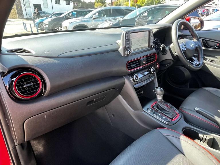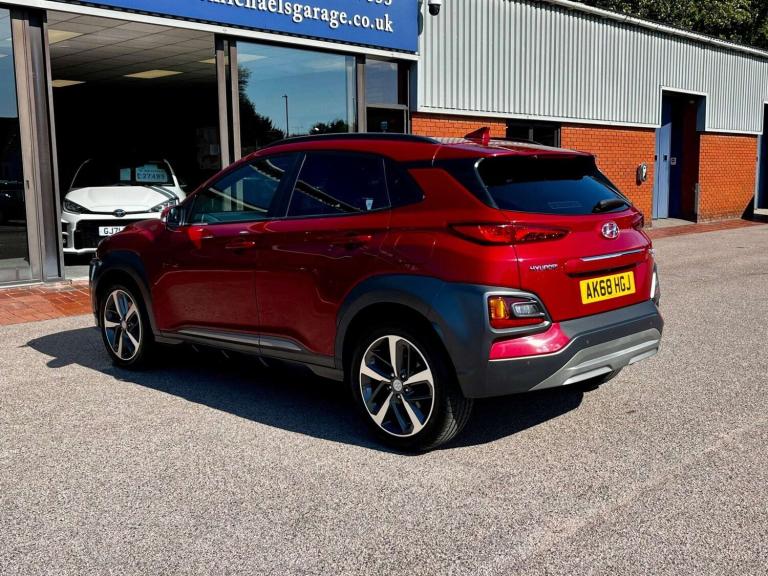 Used 2018 Hyundai KONA PREMIUM GT for sale, Registration Number: AK68HGJ, Mileage: 33,035 miles, Transmission: Automatic, Fuel Type: Petrol, Insurance Group: 19A, Colour: Pulse Red – Metallic Pearl, Doors: 5, Engine Size: 1.6L, Body Type: Hatchback, CO2: 158 g/km, Interior Trim: Black leather / red colour pack, MPG: 34, Previous Keepers: 1, Height: 1,565 mm, Length: 4,165 mm, Width: 1,800 mm, Engine Euro Status: 6, Cylinders: 4, Driven Axle: 4WD, Engine Capacity: 1,591 cc, Gears: 7, Steering Wheel: RHD, MPG (Extra Urban): 46.3, MPG (Urban Cold): 42.8, Acceleration (0 - 62 MPH): 7.9 secs, BHP: 175 bhp, Maximum Speed: 127 mph, Torque: 195 ft-lb, NCAP (Adult Rating): 87, NCAP (Overall Rating): 5, NCAP (Pedestrian Rating): 62, Gross Weight: 1,521 kg, Seats: 5.Features include 18"" Magnetic Grey Machine Cut & Polished Alloy Wheels, 8.0 inch touch sensitive LCD central multi-function display screen, ABS with EBD and Brake Assist function, 7 Speed DCT Transmission 4WD, Air Conditioning, Autonomous Emergency Braking with pedestrian recognition (AEB), Auto dimming rear view mirror, Auto High Beam Assist, Auto Stop/Start, Auto-headlamps (on/off), Blind Spot Monitoring System (BLIS), Bluetooth Handsfree Phone And Media Connectivity, Climate Control, Cruise Control & Speed Limiter, DAB Radio, Downhill Brake Control Assist, Drivers Alert System, Eco Drive Mode, Fog Lights Front and Back, Front and rear radar style parking sensors, Front and rear electric windows, Full Leather, Head-Up Display, Heated Door Mirrors, Heated Seats, Heated Steering Wheel, Heated washers, Hill Start Assist, Isofix child seat anchor points, Keyless Entry, Keyless Start, Lane Departure Warning System, LED daytime running lights, Low tyre pressure indicator with rim mounted sensors, Low speed pre collision assist, Metallic Paintwork, Mobile Integration using Apple CarPlay and Android Auto, Mobile Phone Wireless Charging pad, Parking Camera, Power Fold Electric Mirrors, Privacy Glass (Rear Windows & Tailgate), Rain Sensing Windscreen Wiper, Rear collision warning, Rear seat with 40/60 split folding, Remote central locking, Satellite navigation system with colour, 8 inch display, touch screen, 3D and voice, maps updated and traffic information, Selectable driving modes that affect steering and engine mapping, Sport Drive Mode, Synthetic leather multi-function steering wheel with telescopic adjustment, Touchscreen Media, Traction Control, USB input/charging port, Headlights - Full LED, Ventilated Front Seats, Electric adjustable driver & passenger seats.This vehicle comes with 2 keys, MOT, full HPI check, professional valet including paintwork care, comprehensive warranty, thorough Pre-Delivery Inspection with any required servicing carried out to manufacturer standards.No admin fees or extra hidden costs are applicable. Excellent rates and flexible finance packages are available. Established over 40 years, St Michaels Garage is a family run business with high standards and a hassle-free, helpful approach. With 2 branches located in Sittingbourne, Kent.