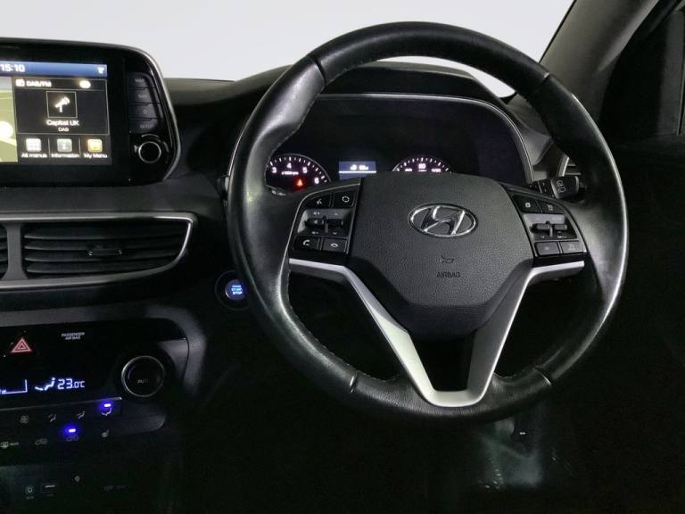 Why This Hyundai TUCSON Wins? This 2019 Hyundai TUCSON GDi Premium is a well-maintained and stylish SUV that blends practicality with modern comfort. Powered by a 1.6L petrol engine and fully Euro 6 compliant, it delivers smooth performance and strong fuel efficiency. The Premium trim ensures a refined driving experience with heated front and rear seats, dual-zone climate control, and convenient wireless phone charging. Seamless smartphone integration through Apple CarPlay keeps you connected and entertained on every journey. The TUCSON also impresses with its spacious interior and generous boot capacity, making it an ideal choice for families, commuters, or anyone with an active lifestyle. Combining practicality with comfort and a low insurance group, it represents excellent value compared to other SUVs in its class. Your Peace of Mind? - Clear vehicle history check - Optional 3-36-month extendable warranties - Free 12-month AA roadside assistance - Last Serviced, November 2025 MOT until November 2026 - Drive Away, Insurance Available - No hidden or extra costs, like admin fees Autotraders 2024 Insights: Top 3 Hyundai TUCSON Buyer Priorities: - Reliability and low running costs - Comfort and modern convenience features - Spacious interior and practicality - This GDi Premium model excels across all three — combining Hyundais strong reliability record with generous space, premium comfort, and impressive efficiency for everyday life. Stress-Free Next Steps: - Free Part Exchange Valuation - £0 Deposit Car Finance - Includes free credit checker - Reserve for £99 - Fully refundable .12V Power Outlet - Front Console and Luggage Compartment, 8in Touchscreen Satellite Navigation including Traffic Messaging Channel - Mapcare and Live Services, Bluetooth Connectivity, DAB Digital Radio, Krell Premium Audio - 8 Speakers and Subwoofer, Phone Connection - Android Auto, Phone Connection - Apple CarPlay, USB and AUX Connections - Front, Wireless Phone Charging Pad, 18in Alloy Wheels, Body Colour Bumpers, Chrome Effect Beltline Moulding, Door Mirrors - Electric Adjustment and Heated with Power Folding Function, Door Mirrors with Integrated Indicators - Body Coloured, Electric Windows - Front and Rear with Drivers Anti-Trap and One-Touch Up-Down Control, Exterior Door Handles - Chrome Effect with Front Handle Illumination, Locking Wheel Nuts, Positioning Lights LED, Privacy Glass - Rear Windows and Tailgate, Radiator Grille - Chrome Effect, Roof Rails - Silver, Side Body Moulding - Silver, Skid Plates - Front - Silver, Solar Glass with Shade Band, Spare Wheel - Temporary Space Saver, Adjustable Head Restraints, Adjustable Intermittent Front Windscreen Wipers with Aero Wiper Blade, Air Conditioning - Dual Zone Climate Control, Armrest - Front with Storage, Armrest - Rear Centre with Cup Holders, Automatic Dimming Rear View Mirror with Compass, Automatic Windscreen Wipers with Rain Sensor, Bottle Holders - Front Centre Console and Door, Door Courtesy Lights, Driver Seat Height Adjustment, Front Windscreen Wiper De-Icer, Glove Compartment with Cooling Function and Illumination, Heated Front Seats, Heated Rear Seats, Interior Door Handles - Chrome Effect, Interior Light - Luggage Compartment, Interior Light - Map Reading Lights, Leather Effect Drivers Knee Bolster, Leather Wrapped Steering Wheel and Gear Knob, Luggage Cover, Luggage Hooks, Luggage Net, Passenger Seat Height Adjustment - Electric, Rear Seats - Reclining Manual, Seats - 60-40 Split Folding Rear, Seats - Drivers Electric Adjustment, Seats - Drivers Electric Lumbar Support, Seats - Passenger Electric Adjustment, Steering Wheel Audio and Phone Controls, Sun Visors with Driver and Passenger Illuminated LED Vanity Mirrors, Sunglasses Holder, Supervision Instrument Cluster, Automatic Headlights with Dusk Sensor, Daytime Running Lights - LED, Door Mirror Puddle Lights, Front Fog Lights, Headlights - Halogen Projector Type, Power Assisted Steering, Rear Lights - LED, Static Cornering Lights, 6 Airbags - Front - Front Seat Side and Curtain, ABS - Anti-Lock Brake System, Active Bonnet System, Au