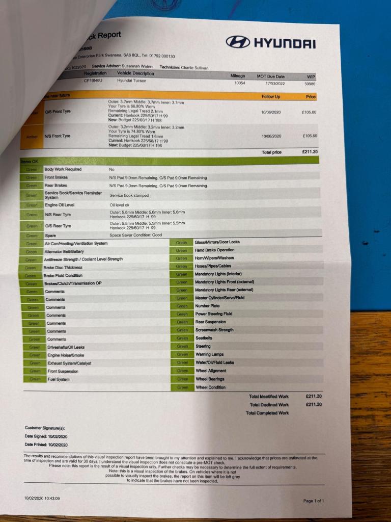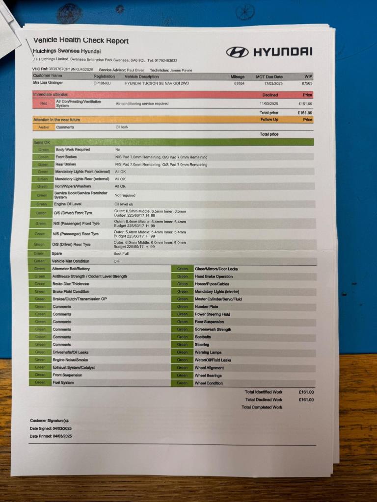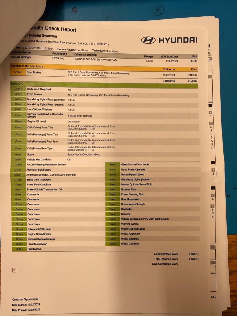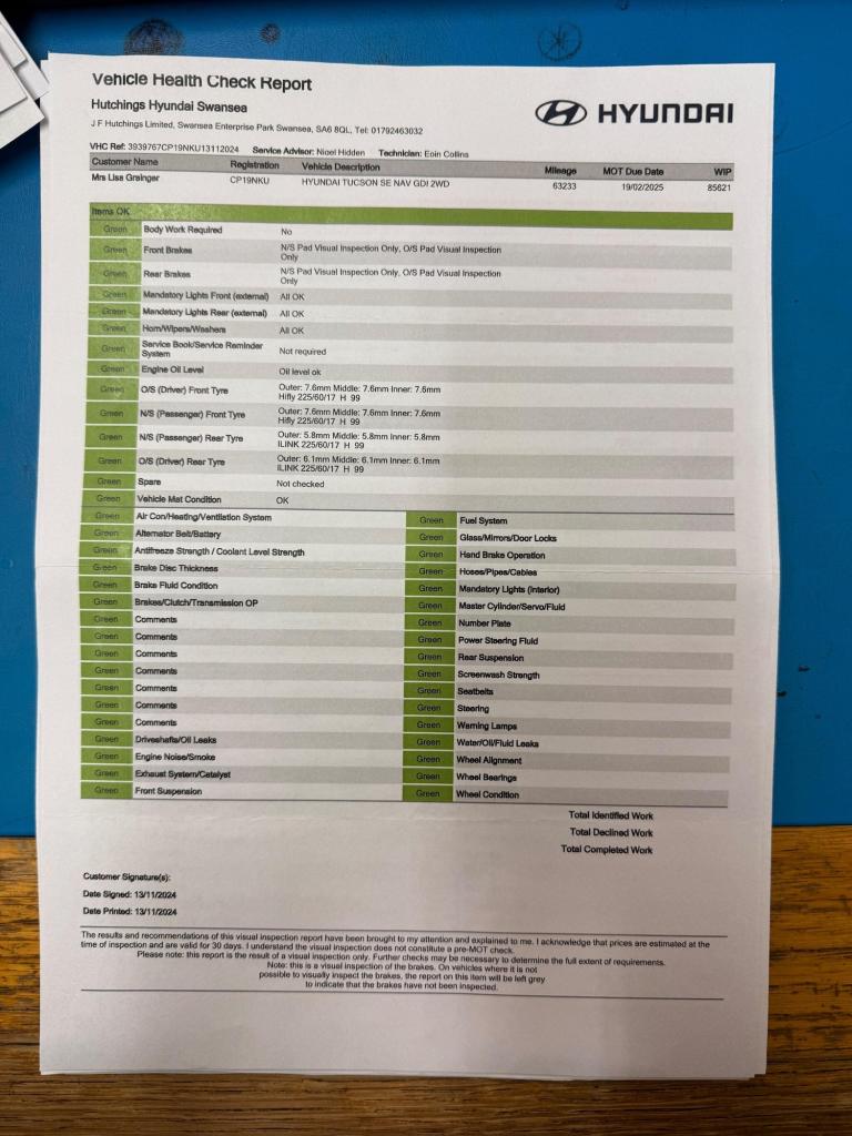 only 1 owner from new, car comes new service, new mot, This 2019 Hyundai TUCSON GDi SE Nav boasts a full dealership service history and has had only one owner from new, ensuring excellent provenance. This Euro 6 compliant 1.6 litre petrol model comes with a 12 month MOT provided on purchase. Inside, you'll find dual zone climate control for personalised comfort, and seamless integration with your smartphone thanks to Apple CarPlay. The SE Nav trim also includes automatic headlights that activate with a dusk sensor, Bluetooth connectivity for hands free calls and music streaming, and a rear camera to assist with parking.The TUCSON GDi SE Nav offers a generous boot space, making it ideal for families or those who need extra room for luggage or shopping. Its low insurance group rating indicates that running costs are likely to be more affordable compared to similar vehicles. These highlights, combined with its comprehensive service history and single owner status, demonstrate that this Hyundai TUCSON is a well maintained and practical choice.