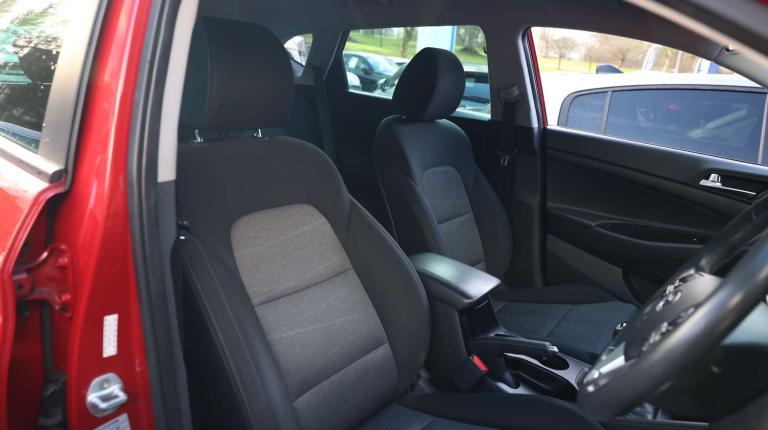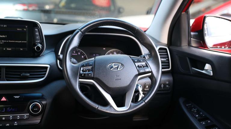 .Looking for an SUV that ticks all the boxes? The 2019 Hyundai Tucson 1.6 GDi SE Nav 5dr 2WD is a fantastic choice whether youre after something stylish for the daily commute or a reliable companion for weekend adventures. Whats Under the Hood? This Tucson comes with a 1.6-litre GDi petrol engine, offering 132 bhp for a smooth, comfortable drive. Its ideal for city driving and long motorway trips, while still being efficient on fuel. Plus, its front-wheel drive, so its got the handling you need, without unnecessary complexity. Engine: 1.6 GDi Petrol Power: 132 bhp Fuel Economy: 44.1 mpg (combined) CO2 Emissions: 147g/km 0-60 mph: 11.1 seconds Tech Youll Love The SE Nav trim brings plenty of modern tech to keep you connected, entertained, and safe on the road: 8-inch Touchscreen with Satellite Navigation Apple CarPlay & Android Auto so you can sync your phone effortlessly Bluetooth for hands-free calls and music streaming DAB Radio for crystal-clear audio Reversing Camera and Rear Parking Sensors to make parking a breeze Cruise Control for those long motorway drives Lane Departure Warning and Lane Keep Assist for extra peace of mind Comfort for Every Journey The Tucson is designed to keep you comfortable, whether youre heading out for a quick trip or a longer journey. Its spacious inside, with plenty of legroom and a boot that can handle all your gear. Dual Zone Climate Control to keep everyone at the perfect temperature Heated Front Seats for those chilly mornings Adjustable Steering Wheel so you can find your perfect driving position Rear Privacy Glass for a touch of style and added comfort Split-folding Rear Seats to give you more boot space when you need it Safety You Can Trust Hyundai has packed this Tucson with features to help you stay safe and secure on the road, including advanced driver assistance systems: Autonomous Emergency Braking to help avoid collisions Driver Attention Alert that lets you know if youre getting too tired behind the wheel Multiple Airbags for added protection Electronic Stability Control (ESC) to keep you stable in tricky driving conditions Security Alarm & Immobilizer to keep your car safe when you're not around The Bottom Line All of this comes wrapped up in a sleek, stylish package thats perfect for daily use. Whether youre zipping around town or heading out on a road trip, the Tucson has the space, tech, and safety features you need to enjoy the journey..8'' touchscreen satellite