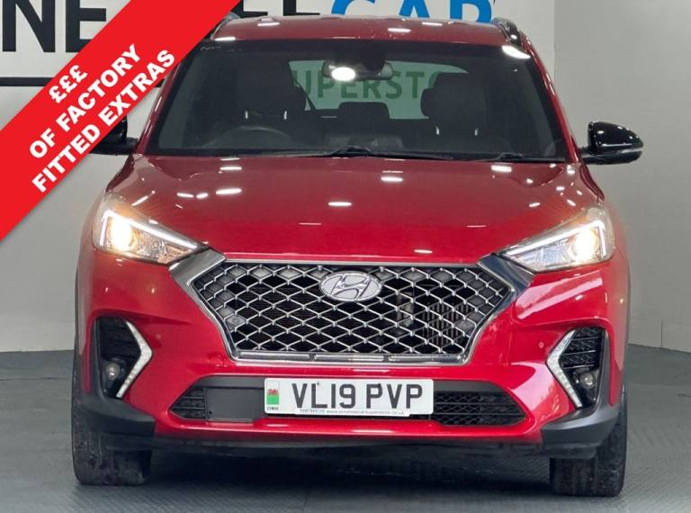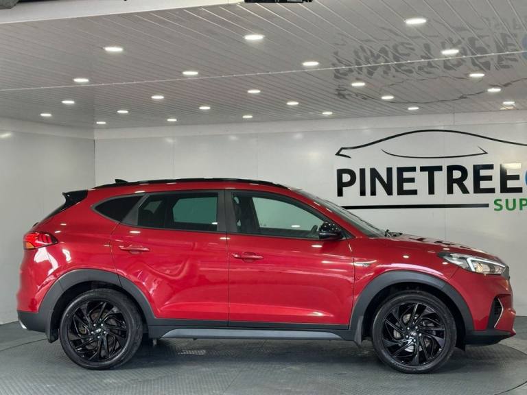 Discover this 2019 Hyundai TUCSON T-GDi N Line, boasting exceptionally low mileage for its age at just 35,252 miles, and benefiting from a clear vehicle history check. This Euro 6 compliant model is powered by a responsive 1.6 litre petrol engine, offering an engaging driving experience with a 0-60mph acceleration time of 9.2 seconds. The N Line trim level enhances its sporty appeal, making it a stylish choice for any driver. This TUCSON stands out with its impressive boot space, providing ample room for all your needs, whether its for daily errands or longer journeys. Furthermore, its placement in a low insurance group means you can enjoy the benefits of this capable SUV with potentially lower running costs. These factors, combined with its performance and practicality, indicate that this Hyundai TUCSON offers a superior ownership proposition compared to many other vehicles in its class. Pinetree Car Superstore is a family-run business with over 20 years of experience and tens of thousands of happy customers. We pride ourselves on providing a friendly, hassle-free, and confident car-buying experience with a knowledgeable team ready to help you find the right vehicle. Every car undergoes a full Pre-Delivery Inspection by a qualified engineer to AA standards before collection. We offer a range of warranty packages to suit each customer. Complimentary Breakdown cover is also available Finance is quick and easy with flexible options from leading lenders, tailored to suit your budget. We price-check our stock daily to ensure great value for every customer. This car comes with all the standard features of this model (Every effort has been made to ensure the accuracy of the information however, errors may sometimes occur. Please check with your Relationship Manager about any items which may affect your decision to purchase) .Fiery Red