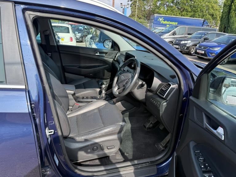 Hyundai Tucson 1.6 CRDi Premium in metallic blue. A lovely example here, in great condition both inside and out. Drives as good as it looks too. Huge spec being the Premium model including Full Black Leather Upholstery, Heated Front & Rear Seats, Sat-Nav, Android Auto/Apple Car Play, Cruise Control, Dual Zone Climate Control, Reversing Camera, Front & Rear Parking Sensors, A/C, Alloy Wheels, USB...the list goes on and on. Don’t miss your chance to own this fantastic vehicle. Call Coopers Car Sales today at [Phone number removed] to arrange a viewing or to find out more about this incredible Hyundai Tucson. Your next adventure awaits!. 12v Socket,Adjustable Steering Wheel,Air Conditioning,Alarm,Alloy Wheels,Anti Lock Brakes,Android Auto,Apple Car Play,Auto On Headlights,Aux Input,Bluetooth Audio Streaming,Bluetooth Telephone Hands Free,CD Radio,Central Locking,Climate Control,Cruise Control,Cupholders,DAB Radio,Driver Airbag,Dual Zone Climate Control,Electric & Heated Door Mirrors,Front & Rear Electric Windows,Front Fog Lights,Front Parking Sensor,Fuel Computer,Heated Rear Seats,Heated Front Seats,Height Adjustable Drivers Seat,Immobiliser,ISOFIX,Keyless Start,Keyless Central Locking,Metallic Paint,Multiple Airbags,Leather Upholstery,Passenger Airbag,Power Assisted Steering,Rear Parking Sensor,Power Fold & Heated DoorMirrors,Remote Central Locking,Reversing Camera,Satellite Navigation,Split Folding Rear Seats,Traction Control,Trip Computer,Tyre Pressure Monitor,USB