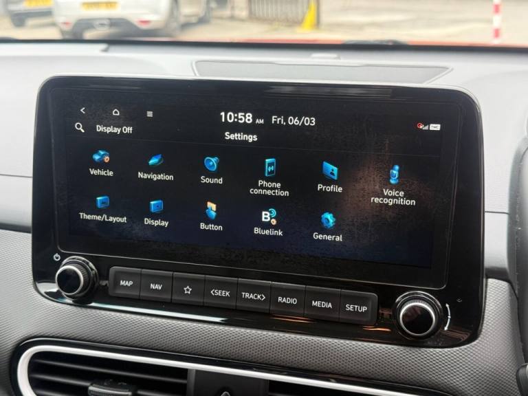 Metallic Red, Full Hyundai Service History, 18" Bi Colour Alloy Wheels, 10.2" Touchscreen Media System with SAT NAV, Smartphone Interface with Wireless Phone Charging Apple Carplay/Android auto, Front and Rear Parking Sensors with Reversing Camera, Heads Up Display, Full LED LED Headlights, Electric Heated and Cooled Seats, Heated Multi Function Steering Wheel with Cruise Control, Krell Premium Audio with DAB Digital Radio/Media In, Electric Windows, Electric Mirrors with Power Fold Function, Remote Central Locking with Keyless Go and Entry, Rear Privacy Glass, Plus All Usual SE Premium Speciation, Lovely Hybrid Kona with Great Specification and Service Records.Pulse Red