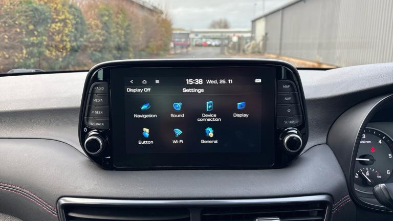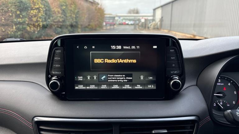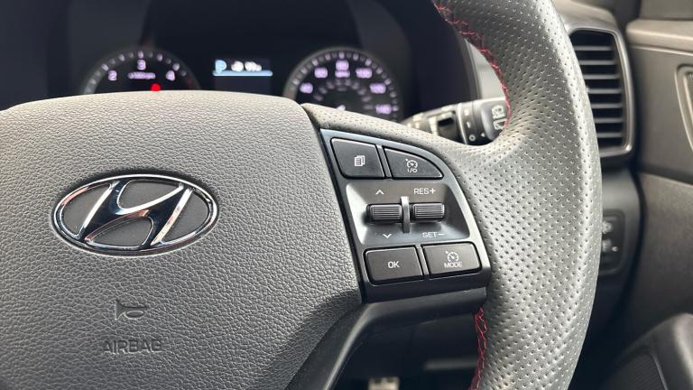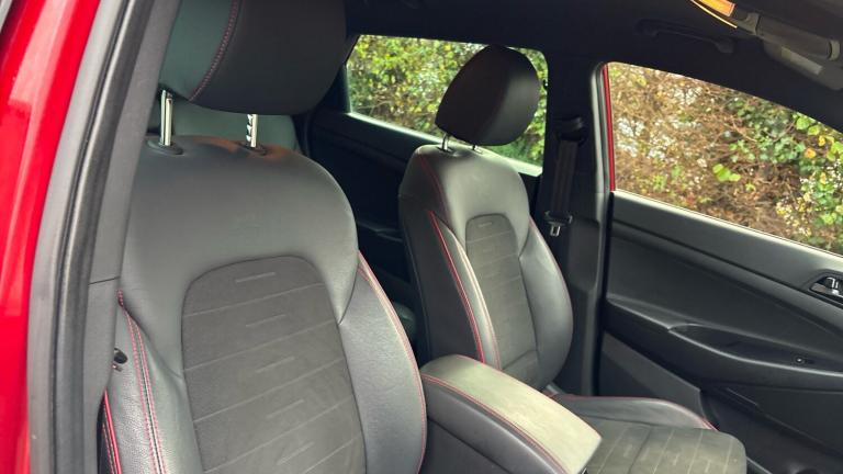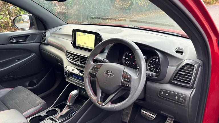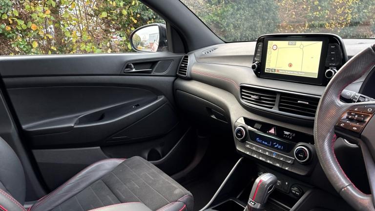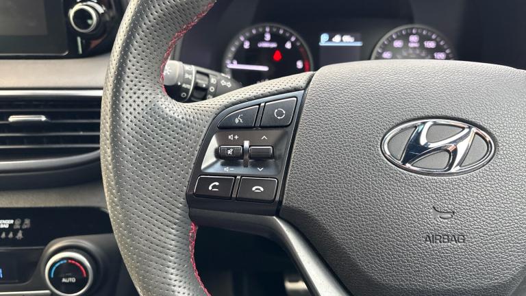 The Hyundai Tucson Diesel Estate 1.6 N Line 2WD is a mild hybrid diesel SUV that blends strong efficiency with sporty styling.The N Line trim adds a more dynamic look with 19 inch alloys, distinctive exterior styling and leather and suede sport seats, while the cabin provides practical space, a versatile boot and comfort features such as dual zone climate control, heated seats and keyless entry.It’s a stylish, efficient and well equipped option in the mid size SUV class..Air Conditioning, Climate Control, Cruise Control, Satellite Navigation, Heated Seats, DAB Radio, Bluetooth, Parking Sensors, USB, Rear Camera& Auto Lights, Rear wash/wipe with intermittent wipe setting, Traction control, Bluetooth system, Cruise control + speed limiter, Trip computer, Black outside mirror covers, DAB Digital radio, Twin exhaust pipes, LED brake lights, Dual zone climate control, Cloth upholstery, Luggage compartment lighting, Front seatbelt pretensioners, Reclining rear seats, Deadlocks, Driver and passenger sunvisors with illuminated LED vanity mirrors, 19"" Alloy wheels, Tyre repair kit