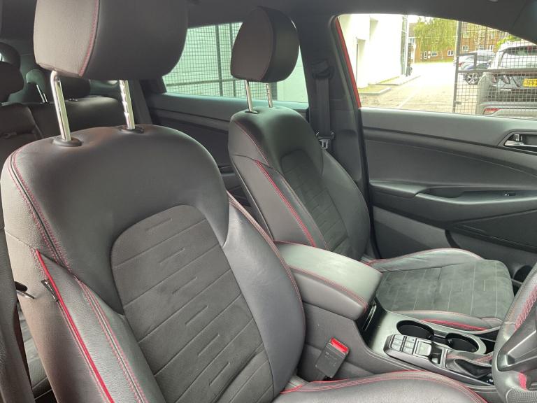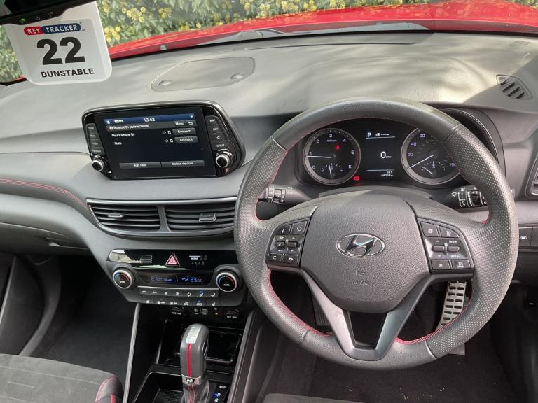 Hyundai Tucson 1.6 CRDi 48V MHD 136 N Line 5dr 2WD DCT. Discover this 2020 Hyundai TUCSON CRDi N Line, a stylish and efficient SUV that's ready for your next adventure. This particular model boasts a 1.6L Diesel Hybrid engine, offering a compelling blend of performance and economy. As a Euro 6 compliant vehicle, it meets stringent emission standards. Inside, you'll find a host of convenient features designed to enhance your driving experience, including a wireless phone charging pad, heated front seats for those colder mornings, and automatic headlights that activate with a dusk sensor, ensuring optimal visibility. This TUCSON stands out with its impressive fuel economy, achieving a remarkable 50 miles per gallon, which is a significant advantage over many other vehicles in its class. Furthermore, its low insurance group rating means more savings for you, and its low CO2 emissions contribute to a more environmentally friendly drive. These highlights collectively demonstrate the TUCSON's superior value and appeal..SAT NAV / DAB / CAMERAS.8'' touchscreen satellite navigation including traffic messaging channel, map care and live services, Apple car play/Android Auto, Bluetooth system, Cruise control + speed limiter, Digital clock, Drive mode selector, Driver alert system, Emergency stop signalling system, Front and rear parking sensors, Lane keep assist, PAS, Rev counter, Reversing camera, Roll over sensor, Speed limit information, Tailgate open warning light, Trip computer, Trip odometer, Water temperature gauge, Windscreen washer fluid sensor and warning indicator, Wireless phone charging pad, 2 front and 2 rear speakers with 2 tweeters, DAB Digital radio, Steering wheel mounted audio/phone controls, USB and aux connection in front, Adjustable intermittent front windscreen wipers with aero wiper blade, Auto dimming rear view mirror with compass, Automatic defog system, Automatic headlights with dusk sensor, Automatic windscreen wipers with rain sensor, Black door mirrors with integrated indicators, Black outside mirror covers, Black roof rails, Body colour bumpers, Body colour exterior door handles, Electric front/rear windows with drivers one touch/anti-trap, Electrically adjustable, heated and power folding door mirrors, Follow me home headlights, Front fog lights, Grey bodyside mouldings, Halogen projector headlights, Integrated front spoiler, Integrated rear spoiler, LED brake lights, LED daytime running lights, LED rear lights, N Line Badging, N Line