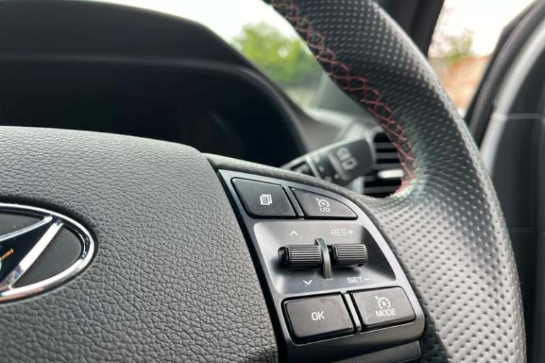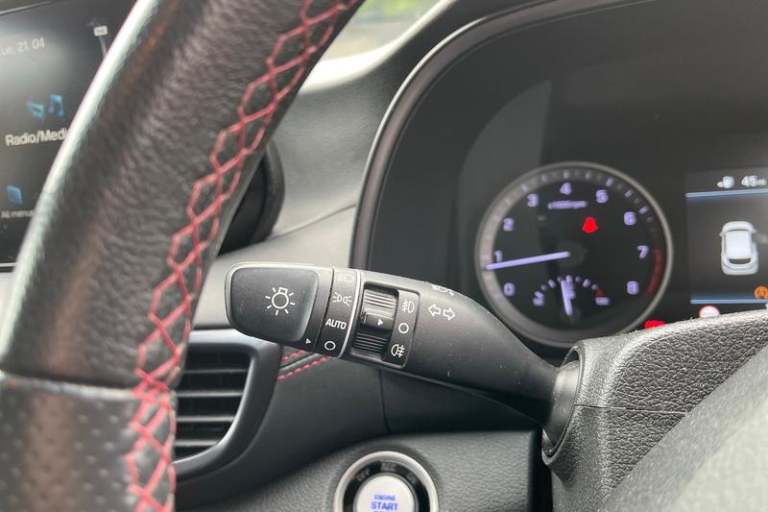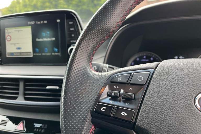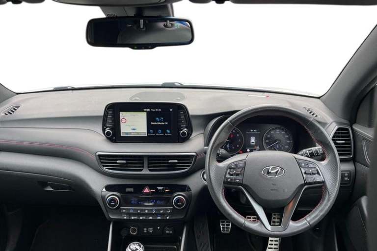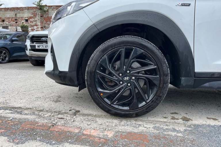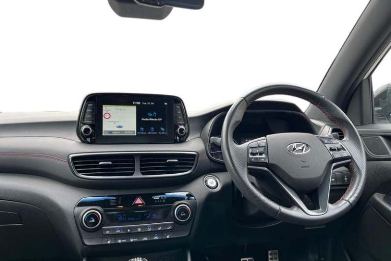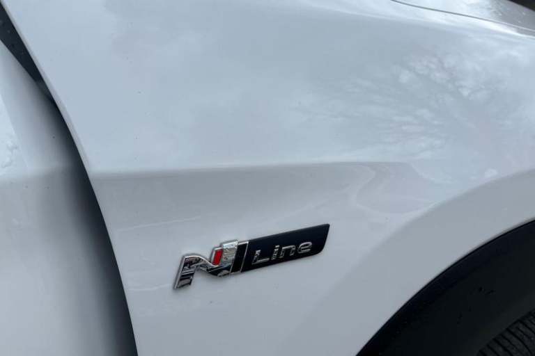 8 touchscreen satellite navigation including traffic messaging channel, map care and live services, Apple car play/Android Auto, Bluetooth system, Cruise control + speed limiter, Digital clock, Driver alert system, Emergency stop signalling system, Flex Steer variable steering settings, Front and rear parking sensors, Lane keep assist, PAS, Rev counter, Reversing camera, Roll over sensor, Speed limit information, Tailgate open warning light, Trip computer, Trip odometer, Water temperature gauge, Windscreen washer fluid sensor and warning indicator, Wireless phone charging pad, Adjustable intermittent front windscreen wipers with aero wiper blade, Auto dimming rear view mirror with compass, Automatic defog system, Automatic headlights with dusk sensor, Automatic windscreen wipers with rain sensor, Black door mirrors with integrated indicators, Black outside mirror covers, Black roof rails, Body colour bumpers, Body colour exterior door handles, Electric front/rear windows with drivers one touch/anti-trap, Electrically adjustable, heated and power folding door mirrors, Follow me home headlights, Front fog lights, Grey bodyside mouldings, Halogen projector headlights, Integrated front spoiler, Integrated rear spoiler, LED brake lights, LED daytime running lights, LED rear lights, N Line Badging, N Line Exclusive front and rear bumpers, N Line grille, Positioning Lights - LED, Privacy glass - Rear windows and tailgate, Rear skid plate - Grey, Rear wash/wipe with intermittent wipe