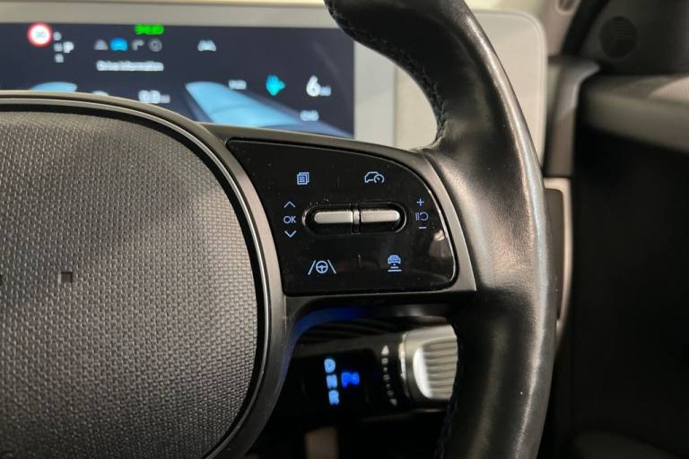 This 2021 Hyundai IONIQ 5 Premium is a superb example, having been owned by just one person since new. This electric vehicle boasts a substantial 73 kWh battery, offering a maximum range of 298 miles when new, ensuring you can travel further on a single charge. Charging at home with a 7kW charger takes approximately 10 hours and 53 minutes for a full charge, while rapid public charging can take you from empty to 80% in an impressive 17 minutes. The vehicles MOT is valid until September 2026, providing peace of mind. Notable features include dual LED headlamps for excellent visibility, seamless phone connectivity with both Android Auto and Apple CarPlay, a convenient wireless phone charging pad, and a heated steering wheel for added comfort during colder journeys. The IONIQ 5 Premium stands out with its remarkable performance, achieving 0-60mph in just 7.4 seconds, demonstrating its responsive acceleration. This electric car also offers a generous boot space, making it practical for everyday use and longer trips. The 298 mile maximum range highlights its capability as a long distance electric car, setting it apart from many others in its class. Lifetime warranty available on this car, plus a £1,000 finance contribution when you part exchange. Voted UK Car Supermarket of the Year two years running, we offer 0% finance, part exchange, and lifetime warranties across our entire range. Every car is thoroughly inspected before sale and comes with a full history check, so you can buy with complete peace of mind. Buy with confidence on our best finance rates. Proud winners of the CarGurus Top-Rated Dealer 2022 and the MotoNovo Extra Mile Award. .12.3in Touchscreen Satellite Navigation and Media Centre, 12V Power Outlet - Front Console, 19in Alloy Wheels, A-B-C Pillar Trim - Cloth, ABS - Anti-Lock Brake System, Air Conditioning - Dual Zone Climate Control, Airbag - Front Passenger Deactivation Switch, Airbag - Front Thorax and Pelvis - Curtain, Airbags - Driver, Airbags - Front Centre Side, Alarm - Thatcham Category 1, Alternator Management System - AMS, Automatic Windscreen Wipers with Rain Sensor, Blind Spot Collision Avoidance Assist, BlueLink, Bluetooth Connectivity with Voice Recognition, CCS Combo Rapid Charge Port - 50kW, Central Locking - Remote Control, Centre Console - Static, Charging Cable - 7 Pin Type 2, Charging Cable - Emergency 3 Pin Connector - ICCB, Childproof Rear Door Locks, Cup Holders - Front, Daytime Running Lights - LED, Digital Clock, Door Mirrors - Black, Door Mirrors - Electric Adjustment - Folding and Heated, Door Scuff - Standard Plate, Drive Mode Select, Drivers Seat Height Adjustment - Electric, Drivers Seat Lumbar Support - Electric, Drivers Supervision Instrument Cluster with Full TFT Display - 12.3in, Dual LED Headlamps with Low-High Projection, eCall, Electric Parking Brake with Auto Hold Function, Electric Windows - Front and Rear with Anti-Trap Mechanism and One Touch Control, Electronic Stability Control - ESC, Exterior Door Handles - Body Coloured, Exterior Door Handles - Flush, Fog Lights - LED Rear, Forward Collision Avoidance Assist - Car - Pedestrian - Cycle, Forward Collision-Avoidance Assist - Junction Turning-Crossing, Front Passenger Seat Height Adjustment - Manual, Front Seat Back Pockets - Driver and Passenger Seat, Frunk - Under the Bonnet Storage, Head Restraints - Vertical Adjustment - Second Row Outer, Head Restraints - Vertical and Horizontal Adjustment - Front, Headlamp Surround, Headlights - Smart High Beam, Heated Front Seats, Heated Rear - Outer - Seats, Heated Steering Wheel, Highway Drive Assist - Level 2, Hill-Start Assist Control HAC, Immobiliser, Indicator Lights - Door Mirror, Inside Rear View Mirror - Electrochrome, Intelligent Speed Limit Assist - ISLA, Interior Door Handles - Metal Paint Effect, Interior Light - Luggage Compartment, Interior Mood Lighting, IONITY - Via Charge myHyundai App (1 Year Subscription From New), ISOFIX Child Seat Anchorage Points - Front Passenger Seat, ISOFIX Child Seat Anchorage Points - Rear - Outer Rear, Lane Follow Assist - LFA, Lane Keep Assist - LKA, LED Rear Combination Lights, Luggage Cover, Luggag