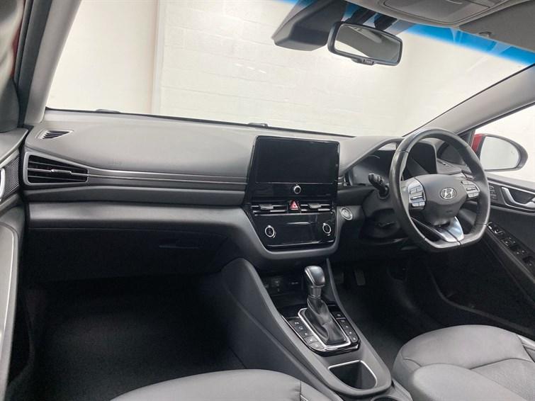 10.25"" touchscreen satellite navigation includes traffic messaging channel, mapcare, live services a,12V power outlets,16"" alloy wheels,3 rear seats,3.3 kW On Board Charger,3x3 point rear seatbelts,60/40 split folding rear seat,7 pin charging cable,Active air flap radiator grille,Adaptive cruise control with Stop and Go,Airbags - front, front side, curtain and drivers knee airbags,Anti-lock brake system (ABS),Apple car play/Android Auto,Auto dimming rear view mirror,Automatic defog system for front windscreen,Automatic headlights with dusk sensor,Automatic windscreen wipers with rain sensor,Autonomous emergency braking,Blind spot detection system,Bluetooth system,Body colour bumpers,Body colour door handles with chrome inserts,Body colour door mirrors,Bodyside mouldings,Centre console storage,Centre interior light,Chrome door scuff with ioniq logo,Chrome finish window surround,Chrome interior door handles,Chrome radiator grille,DAB Digital radio,Deadlocks,Door mirror puddle lights,Driver attention alert system,Driver's electric adjustable lumbar support,Driver's seat memory,Driver/passenger sunvisors with illuminated vanity mirrors,Dual zone climate control,E-call,Eco driving assistant system (ECO DAS),Electric adjustable door mirrors,Electric front windows - anti trap + one touch,Electric heated door mirrors,Electric height adjustable driver seat,Electric parking brake,Electric power steering with variable drive modes,Electronic stability control,Emergency 3 pin connector charging cable (ICCB),Front and rear parking sensors,Front centre armrest with storage compartment,Front cupholder,Front head restraints with vertical and horizontal adjustment,Front passenger airbag deactivation switch,Front seat and rear pockets,Gear lever drive mode selector,Heated front seats,Heated outer rear seats,Heated rear windscreen,Heated steering wheel,High beam assist,Hill start assist control (HAC),Illuminated luggage compartment,Immobiliser,Infinity sound system includes 1 centre, 2 tweeters, 2 front, 2 rear and 1 ext amp,Interior mood lighting,Keyless smart entry with push button start,Lane departure warning system with lane keep assist - LKAS,Lane follow assist,Leather upholstery,Leather wrapped steering wheel,LED daytime running lights,LED Headlights,LED indicators in door mirrors,LED rear fog light,Luggage net,Manual child lock in rear doors,Manual height adjustable front passenger seat,Map and reading lights,Paddle shifter,Parking system with rear camera a...