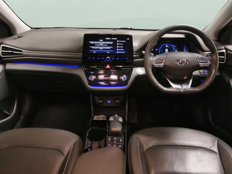 Experience the future of driving with the sleek black Hyundai Ioniq Electric. Enjoy everyday comfort with heated and cooled leather seats, a heated steering wheel, and a drivers electric seat. Stay effortlessly connected thanks to Apple CarPlay and navigate with ease using the built-in Sat Nav. Safety and convenience come standard with Adaptive Cruise Control, Blind Spot Assist, Active Lane Assist, Lane Departure Warning, keyless entry, a reversing camera, and dazzling LED headlights. The Ioniq is ready for your next adventure. 4 services recorded, last serviced on 12/03/2026 at 18,904 miles. MOT to 25/03/2027. Visit our website for service history, online valuation, full vehicle specification plus multiple images. Any feature/option specified here is from 3rd party data. We cannot guarantee the accuracy of any specification supplied by a 3rd party. We recommend that you physically check the specification of the vehicle on site prior to purchase. This information does not form part of the buying contract. Terms & Conditions apply. We have over 2,000 cars available from our 10 national branches, check our website to see all our stock. Our Trustpilot rating is 4.4/5 with over 9,000 reviews.