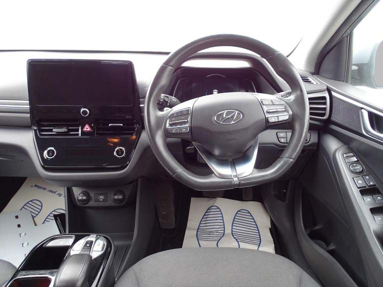 Discover this 2021 Hyundai IONIQ Premium, a superb electric vehicle offering an impressive blend of efficiency and comfort. With a substantial 43 kWh battery, this IONIQ provides a maximum range of 193 miles when new, making it ideal for both daily commutes and longer journeys. Charging is convenient, taking just 6 hours and 5 minutes at home using a 7kW charger, while rapid public charging can replenish the battery from empty to 80% in only 54 minutes.This Premium trim level is equipped with desirable features designed to enhance your driving experience. Enjoy the comfort of a heated steering wheel and dual zone climate control, ensuring a pleasant cabin temperature in all conditions. Parking is made easier with rear parking sensors and a rear camera with guidance system, while automatic headlights with a dusk sensor provide added convenience and safety. Furthermore, the IONIQ boasts a large boot space, offering ample room for your shopping or luggage, setting it apart from many other vehicles in its class.