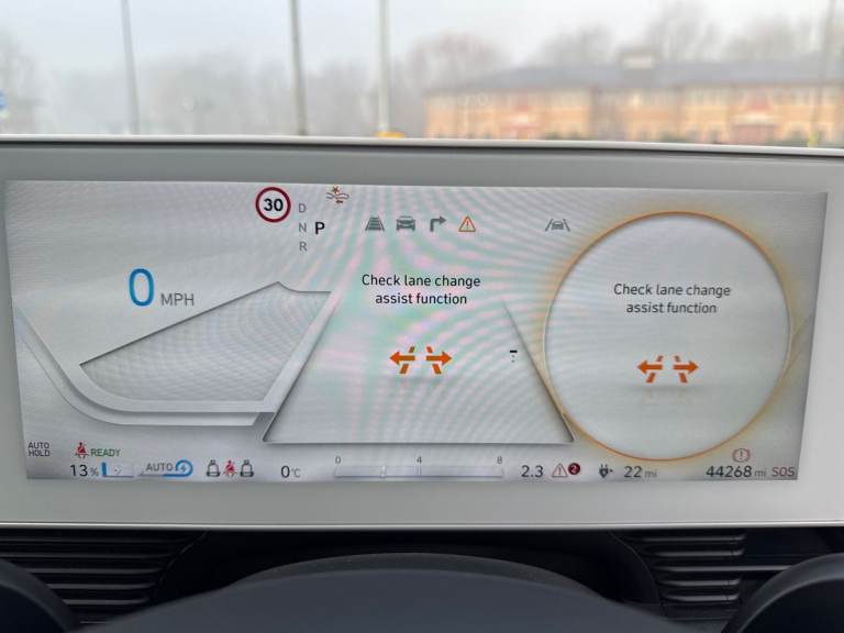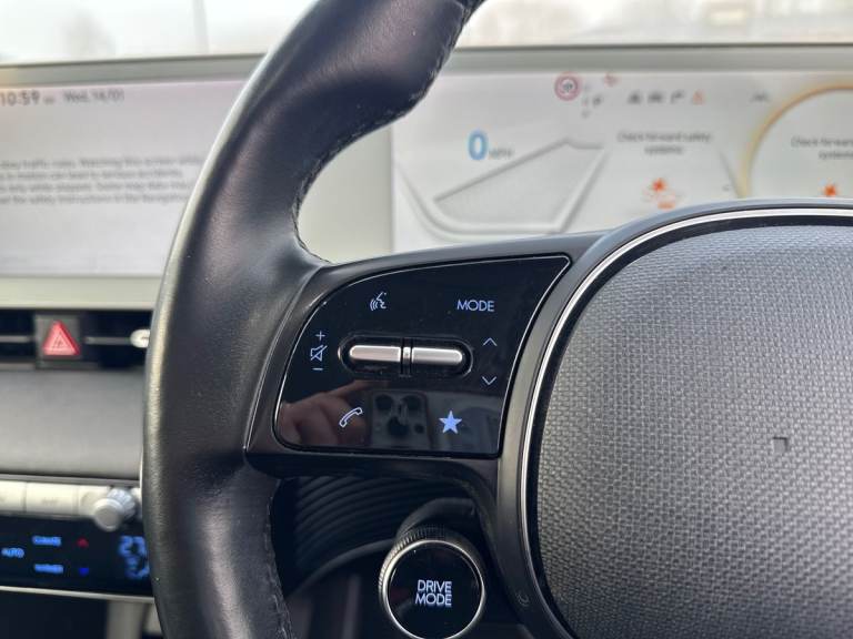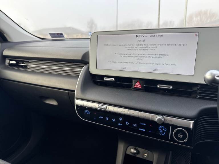 ..Driver Convenience,Blind Spot Collision Avoidance Assist,Digital Clock,Drive Mode Select,Forward Collision-Avoidance Assist - Junction Turning-Crossing,Parking Distance Warning - PDW - Forward-Reverse,Rear View Monitor with Dynamic Parking Guidance,Smart Cruise Control with Stop and Go,Tyre Pressure Monitoring System (TPMS) with Individual Tyre Pressure WarningEntertainment,12.3in Touchscreen Satellite Navigation and Media Centre,12V Power Outlet - Front Console,BlueLink,Bluetooth Connectivity with Voice Recognition,CCS Combo Rapid Charge Port - 50kW,Drivers Supervision Instrument Cluster with Full TFT Display - 12.3in,eCall,IONITY - Via Charge myHyundai App (1 Year Subscription From New),MapCare Programme - 3 Years of Map Updates,Phone Connection - Android Auto,Phone Connection - Apple CarPlay,Speakers - 2 Front - 2 Rear,Trailer Wiring Package,USB Charging Ports - 2 Front,USB Connectivity Port - 1 Front,Wireless Phone Charging PadExterior,19in Alloy Wheels,Door Mirrors - Black,Door Mirrors - Electric Adjustment - Folding and Heated,Door Scuff - Standard Plate,Electric Windows - Front and Rear with Anti-Trap Mechanism and One Touch Control,Exterior Door Handles - Body Coloured,Exterior Door Handles - Flush,Headlamp Surround,Indicator Lights - Door Mirror,Rear Spoiler with Integrated LED Brake Light,Rear Windscreen - Heated and Tinted,Side Body Moulding - Chrome,Side Sill Moulding - Anthracite,Tailgate - Up Lift Opening,Tinted Glass - Rear Windows,Tyre Repair Kit,Windscreen and Front Windows - Tinted,Windscreen with Acoustic FilmInterior,A-B-C Pillar Trim - Cloth,Air Conditioning - Dual Zone Climate Control,Automatic Windscreen Wipers with Rain Sensor,Centre Console - Static,Cup Holders - Front,Drivers Seat Height Adjustment - Electric,Drivers Seat Lumbar Support - Electric,Front Passenger Seat Height Adjustment - Manual,Front Seat Back Pockets - Driver and Passenger Seat,Frunk - Under the Bonnet Storage,Head Restraints - Vertical Adjustment - Second Row Outer,Head Restraints - Vertical and Horizontal Adjustment - Front,Heated Front Seats,Heated Rear - Outer - Seats,Heated Steering Wheel,Inside Rear View Mirror - Electrochrome,Interior Door Handles - Metal Paint Effect,Interior Light - Luggage Compartment,Interior Mood Lighting,Lane Follow Assist - LFA,Luggage Cover,Luggage Hooks,Rear Occupancy Alert,Rear Seats - Sliding,Regenerative Brake Shift Paddles,Roof Trim - Cloth,Smart Electric Tailgate - Hands Free Opening Function,Split Folding Rear Seats -