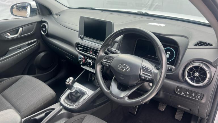 Gloucester Ford have this Hyundai Kona 1.0 MHEV SE Connect finished in Atlas White. This Kona SE Connect in Atlas White is a stylish and forward-thinking compact SUV that perfectly balances efficiency, technology, and everyday practicality. Its crisp Atlas White finish enhances the Kona’s bold, modern design, highlighting its sleek lines and confident road presence. This is a vehicle that stands out effortlessly, whether navigating city streets or cruising on the motorway. At the heart of this Kona is the responsive 1.0 TGDi petrol engine paired with a 48V Mild Hybrid (MHEV) system. This intelligent hybrid technology supports the engine during acceleration and improves overall fuel efficiency, delivering a smooth and refined driving experience while helping to reduce emissions. It’s an ideal choice for drivers seeking economical performance without compromising on power or reliability. The SE Connect trim level ensures you stay seamlessly connected on every journey. With an intuitive infotainment system, smartphone integration, and clear digital displays, everything you need is right at your fingertips. The cabin itself is thoughtfully designed, offering comfort, quality materials, and a practical layout that makes both short trips and longer drives enjoyable for driver and passengers alike. Parking and manoeuvring are made effortless thanks to the rear parking sensors and rear-view camera. These features provide added confidence in tight spaces, delivering clear visuals and helpful alerts to enhance safety and convenience. Whether reversing into a driveway or navigating a busy car park, the Kona makes every movement simple and stress-free.Overall, the Hyundai Kona 1.0 TGDi 48V MHEV SE Connect is a smart, efficient, and well-equipped SUV that combines eye-catching style with advanced technology and everyday usability, making it an excellent choice for modern drivers..Air Conditioning, Climate Control, Cruise Control, Alloy Wheels, DAB Radio, Bluetooth, Parking Sensors, USB, Apple-Android Play, Rear Camera, Auto Lights& Rain Sensors, Rear wiper, Electric front/rear windows with drivers one touch/anti-trap, Tinted glass with front door glass and windscreen with shade band, Rain sensor, Variable front intermittent wipers, Traction control, Electronic stability control, EBD + Brake Assist, Hill start assist control (HAC), Downhill brake control, Manual parking brake, Anti-lock brake system, Bluetooth connectivity, Roadside assistance, PAS, Cruise control + speed limiter, Rear parking sensor, Lane keep assist, Parking system with rear camera and guidance system, Driver attention alert system, Lane follow assist, Forward collision avoidance assist with pedestrian detection, Leading vehicle departure alert (LVDA), Driver attention warning, Digital clock, Windscreen washer fluid sensor and warning indicator