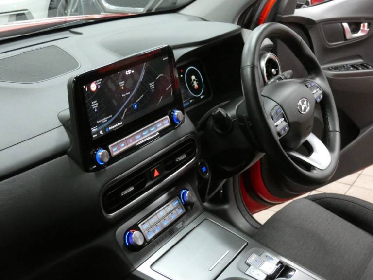 This 2021 Hyundai KONA Premium Electric boasts low mileage for its age, having covered just 28, 095 miles, and has been cherished by only one owner from new. Excellent service history 4 services to 27,139 miles Sept 2025, Mot till Oct 2026, warranty. This well appointed electric SUV offers a substantial battery total capacity of 64 kWh, providing a maximum range of 300 miles when new. Driving is made easier with a rear camera and guidance system, complemented by sat nav, android apple carplay, cruise control, Comfort is enhanced by heated front seats, and convenience is at your fingertips with a wireless phone charging pad. Automatic headlights with a dusk sensor ensure optimal visibility, adapting to changing light conditions. The impressive 300 mile range highlights how this KONA stands out, offering considerable distance on a single charge. For those longer journeys, the fastest public charging time from empty to 80% is a swift 53 minutes, while a full charge at home using a 7kW charger takes approximately 10 hours and 16 minutes. These charging times demonstrate the practicality of this electric vehicle for both daily commutes and extended trips, making it a compelling choice for those seeking an efficient and feature rich electric car. Autoinfusion Ltd, is a family run business with over 30 years motoring experience. On our website you will find our vehicles are generally advertised with upto 100 exterior and interior pictures, 360 interior images, exterior panoramic views and web video showcasing our stock. As an AA approved garage, prior to sale, the majority of our vehicles are inspected by an AA trained technician and pass a full 128 multi-point AA inspection, these cars are highlighted on our website with the AA logo. Please note AA inspections are also available on request if the vehicle has not yet been inspected. All of our stock is constantly price checked ensuring you pay and receive the best package. You will also find details of special promotions on our website. Contact us to book an appointment for a viewing and test drive. We can conduct a live viewing of the vehicle to your mobile device or send you a personalised video highlighting the key features or anything else you may require, which can be viewed in your own time. With our Finance options we can provide class leading packages and rates. We highly recommend you reserve this car on-line , please visit [Website URL removed] or call one of our sales specialists for more informatio.HEATED STEERING WHEEL, SAT NAV, ANDROID APPLE CARPLAY, HEATED SEATS, REAR VIEW CAMERA, 10.25in Widescreen Navigation with Bluelink and Mapcare, 100 Percent MapCare Programme - 10 Years of Map Updates, 17in Alloy Wheels, ABS - Anti-Lock Brake System, Adjustable Head Restraints, Airbags - Front - Front Side and Curtain Airbags, Automatic Dimming Rear View Mirror, Automatic Headlights with Dusk Sensor, Automatic Windscreen Wipers with Rain Sensor, Battery Heater, Blind Spot Collision Avoidance Assist, Bluetooth Connectivity with Voice Recognition, CCS Combo Rapid Charge Port - 50kW, Central Locking - Remote Control, Charging Cable - 7 Pin Type 2, Charging Cable - Emergency 3 Pin Connector - ICCB, Climate Control with Automatic De-Fog System for Front Windscreen, Cruise Control - Smart Adaptive Speed Control with Stop and Go Function, Cup Holders - Front, Daytime Running Lights - LED, Digital Clock, Door Mirrors - Body Coloured, Door Mirrors - Electric Heated and Folding, Drive Mode Selector, Drivers Seat Height Adjustment - Manual, Drivers Supervision Instrument Cluster with Full TFT Display - 10.25in, Electric Windows - Anti-Trap Mechanism - Driver, Electric Windows - Front and Rear, Electric Windows - One Touch Controls - Driver, Electronic Stability Control - ESC, Exterior Door Handles - Body Coloured, Forward Collision Avoidance Assist with Pedestrian and Cycle Detection - FCA, Forward Collision Warning System, Front Seat Back Pockets - Driver and Passenger Seat, HAC - Hill-Start Assist Control, Headlights - Full LED, Heated Front Seats, Heated Steering Wheel, Immobiliser, Indicator Lights - Door Mirror, Intelligent Speed Limit Warning - ISLW, Interior Door Handles - Chrome Effect, Interior Light - Ambient Lighting, Interior Light - Centre, Interior Light - Front, Krell Premium Audio - 8 Speakers and Subwoofer, Lane Follow Assist - LFA, Lane Keep Assist - LKA, Leather Wrapped Steering Wheel, Motor Driven Power Steering - MDPS, Parking Brake - Electric, Parking Sensors - Front and Rear, Parking System - Rear Camera and Guidance System, Passenger Seat Height Adjustment - Manual, Phone Connection - Android Auto, Phone Connection - Apple CarPlay, Positioning Lights LED, Privacy Glass - Rear Side Window and Tailgate, Radio - RDS and Digital Radio - DAB, Rear Cross Traffic Collision Avoidance, Rear Lights - LED, Regenerative Brake Shift Paddles, Roof Rails, Seats - Drivers Electric Lumbar Support, Smart Key - Keyless Entry with Engine Start-Stop Button, Solar