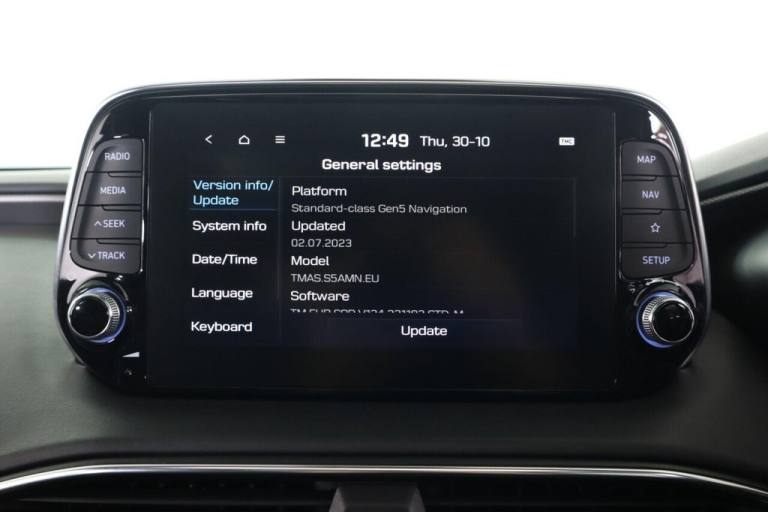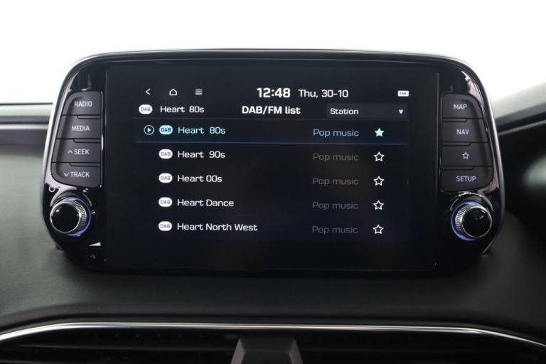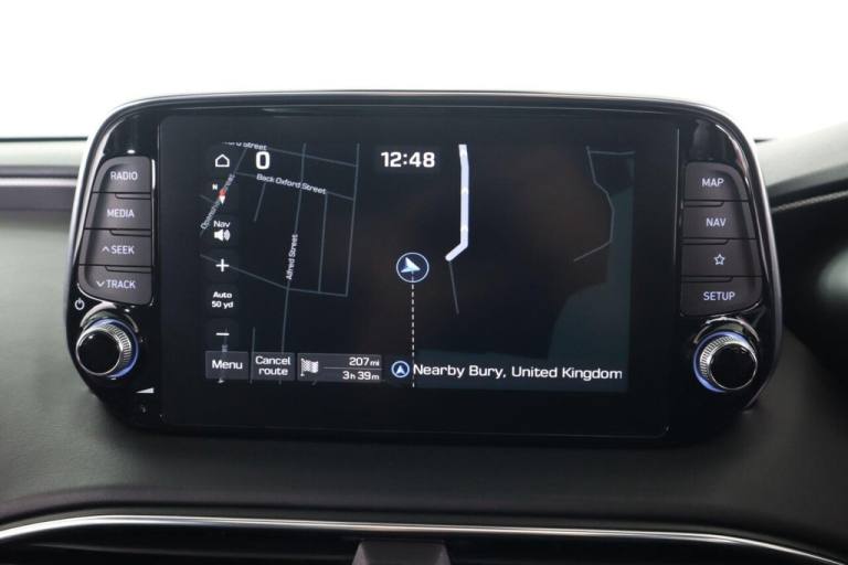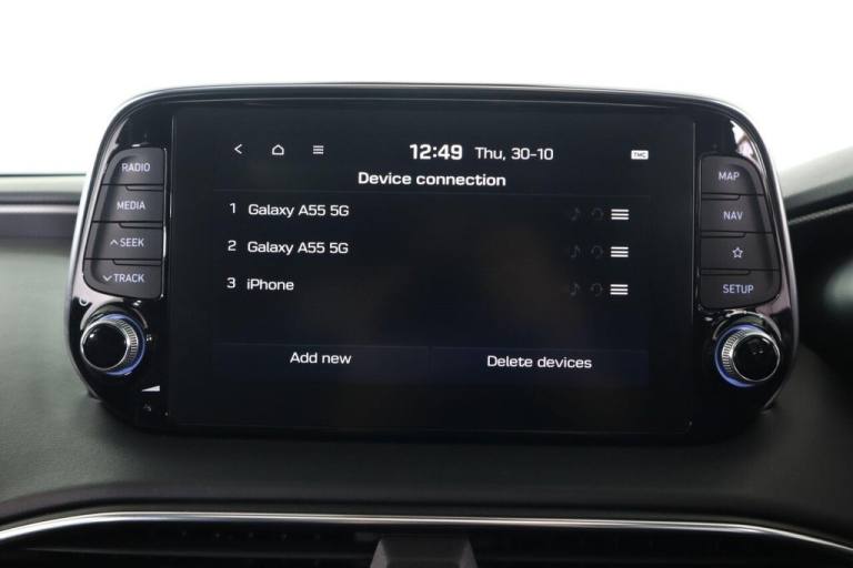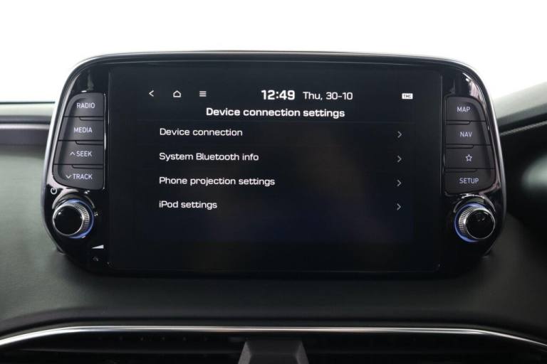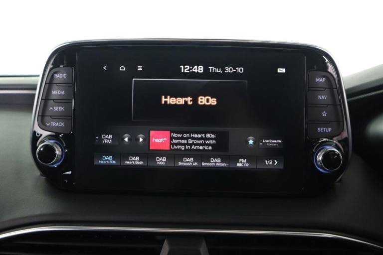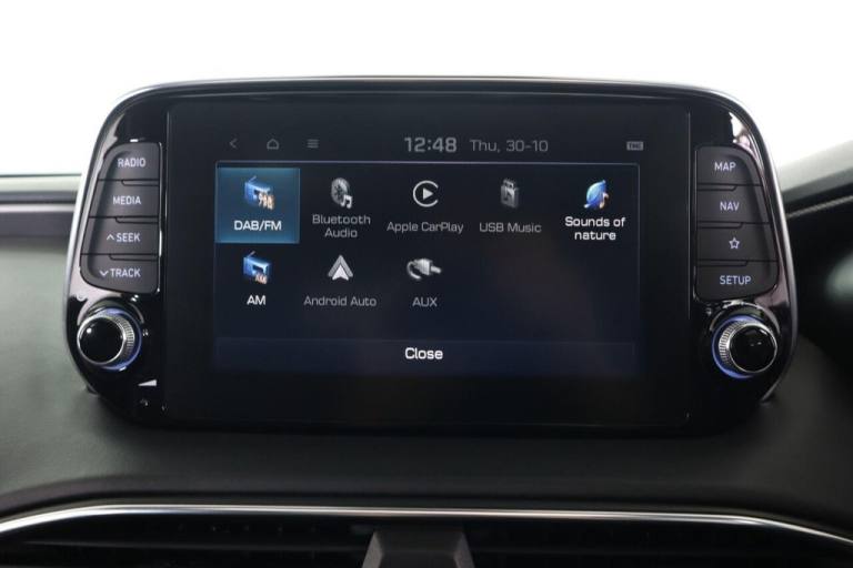 This 2021 Hyundai Santa Fe CRDi Premium SE is a superb example of a well maintained family vehicle. This Euro 6 compliant, four wheel drive model boasts a powerful 2.2 litre diesel engine and offers comfortable seating for seven occupants. It comes equipped with a Smart Key for keyless entry and engine start, a rear view parking camera with guidance, and a Head Up Display to keep essential information in your line of sight. Enjoy your favourite music through the KRELL premium audio system, featuring 10 speakers, an external amplifier, and a subwoofer, and stay connected with Apple CarPlay integration. The Premium SE trim level signifies a higher specification, offering a more refined driving experience compared to other models. This particular Santa Fe benefits from a low insurance group, making it an economical choice for many drivers. Furthermore, its generous boot space ensures you have ample room for luggage, shopping, or sports equipment, highlighting its practicality for everyday use and longer journeys..12V Power Outlet - Front - Rear Consoles and Luggage Compartment, 19in Alloy Wheels, 8in Touchscreen Satellite Navigation including Traffic Messaging Channel - Mapcare and Live Services, A-B-C Pillar Trim - Cloth, ABS - Anti-Lock Brake System, Air Conditioning - Dual Zone Climate Control, Airbags - Front - Front Side and Curtain Airbags, Alarm - Thatcham Category 1, Armrest - Front with Storage, Armrest - Rear with Cup Holders, Automatic Dimming Rear View Mirror with Compass, Automatic Headlights with Dusk Sensor and Follow Me Home Function, Automatic Windscreen Wipers with Rain Sensor, Autonomous Emergency Braking with Pedestrian Recognition - AEB, Blind Spot Detection System with Brake Assist, Blinds - Manual Rear Doors, Bluetooth Connectivity with Voice Recognition, Body Colour Bumpers, Bottle Holders - Front and Rear Centre Consoles - Front and Rear Doors, Central Locking - Remote Control, Chrome Effect Interior Door Handles, Cornering Lights - Dynamic Bending Headlight, Cruise Control - Smart Adaptive Speed Control with Stop and Go Function, DBC - Downhill Brake Control, Deadlocks, Door Centre Trim - Faux Leather, Door Handles - Chrome Effect - Exterior, Door Mirror Puddle Lights, Door Mirrors - Electric Adjustment and Heated with Power Folding Function, Door Mirrors with Integrated Indicators - Body Coloured, Drive Mode Select, Driver Attention Alert - DAA, Drivers Seat Electric Adjustments, Drivers Seat Height Adjustment - Electric, Drivers Seat Lumbar Support - Electric, Drivers Seat with Memory Function, ESS - Emergency Stop Signal, Electric Parking Brake with Auto Hold Function, Electric Windows - Front and Rear with Anti-Trap Mechanism, Electronic Stability Control - ESC, Faux Leather Wrapped Dashboard, Fog Lights - LED Rear, Front Fog Lights - LED, Front Head Restraints - Vertical and Horizontal Adjustment, Front Passenger Airbag De-Activation Switch, Front Passengers Seat Electric Adjustments, Front Passengers Seat Height Adjustment - Electric, Front Passengers Seat Lumbar Support - Electric, Front Seat Back Pockets, Front Ventilated Seats, Front and Rear Door Pockets, Front and Rear Seatbelt Pre-Tensioners, Glove Compartment with Cooling Function and Illumination, Grab Handles x3, HAC - Hill-Start Assist Control, Head Restraints - Rear with Vertical and Horizontal Adjustment, Head Up Display - HUD, Headlights - LED, Headlights - Smart High Beam, Heated Front Seats, Heated Rear Seats, Heated Steering Wheel, Height Adjustable Front Seatbelts, I
