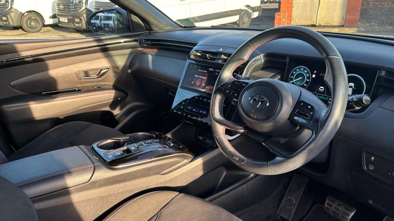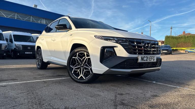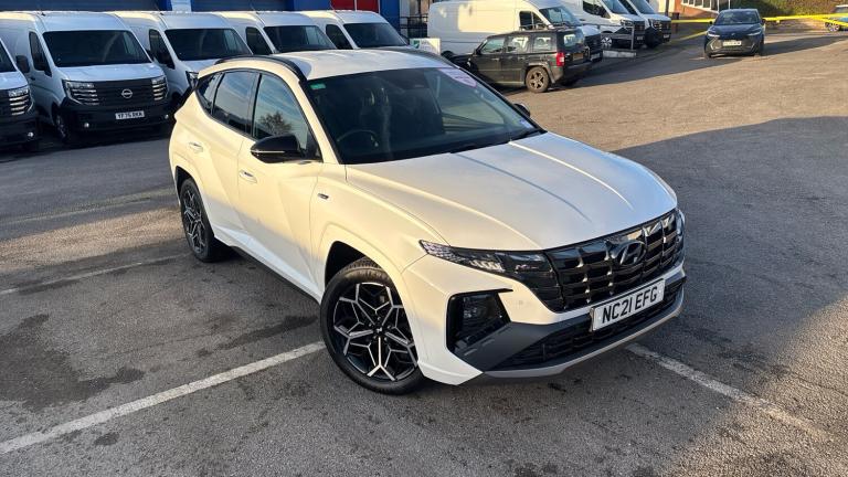 Hyundai Tucson Estate 1.6 TGDi Hybrid 230 N Line 5dr 2WD Auto in white, available now at Ilkeston Nissan Vertu. Registered in July 2021, this impressive SUV has covered 37,562 miles and is in excellent condition throughout. Powered by a 1.6-litre hybrid engine paired with a smooth automatic transmission, it offers strong performance alongside excellent fuel efficiency.The N Line trim adds a distinctive sporty edge with bold exterior styling, 19-inch alloy wheels, and N Line badging, while the interior features part-leather sports seats, a leather-wrapped steering wheel, and aluminium pedals. The cabin is equipped with a high-definition 10.25-inch touchscreen infotainment system with satellite navigation, Apple CarPlay and Android Auto connectivity, dual-zone climate control, and a premium sound system.Safety and convenience come as standard, including adaptive cruise control, lane keep assist, parking sensors, a reversing camera, and keyless entry with push-button start. Combining style, comfort, and advanced hybrid technology, this Tucson N Line is ready to impress. Visit Ilkeston Nissan Vertu to view the car in person or arrange a test drive today..Air Conditioning, Climate Control, Cruise Control, Satellite Navigation, Alloy Wheels, Heated Seats, DAB Radio, Bluetooth, Parking Sensors, Stop Start, Full Service History, USB, Park Assist, Diamond Cut Alloy Wheels, Adaptive cruise, Keyless Entry-Push Button Start, Apple-Android Play, Rear Camera, Auto Lights, Electric Folding Mirrors, Xenon Head Lights, Head Lamp Wash, Lane Departure, Lane Keeping Assist, Pre Crash Prevention& Rain Sensors, Rear wash/wipe with intermittent wipe setting, Automatic defog system, Automatic windscreen wipers with rain sensor, Front and rear electric windows with anti-trap mechanism and one touch control, Tinted glass with windscreen shade band, Adjustable intermittent front windscreen wipers with aero wiper blade, Privacy glass - Rear windows and tailgate, Traction control, Electronic stability control, Brake assist function, Trailer stability assist, Emergency stop signalling system, Hill start assist control (HAC), Downhill brake control