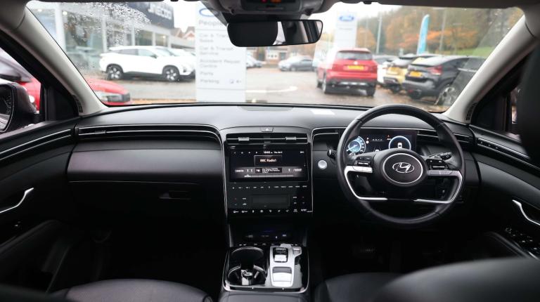 .The 2021 Hyundai Tucson 1.6 TGDi Hybrid 230 Ultimate 5dr 2WD Auto is a premium hybrid SUV that combines advanced technology, exceptional comfort, and a stylish design. With a hybrid powertrain, premium features, and a sleek modern look, the Tucson is the perfect choice for those looking for an eco-friendly, family-friendly SUV with plenty of luxury touches. Whether you're navigating the city or exploring new destinations, the Tucson Hybrid offers an outstanding driving experience thats both efficient and powerful. Key Features: 1.6 TGDi Hybrid Powertrain: The 1.6-litre turbocharged petrol engine paired with a 60.5 kW electric motor provides a combined output of 230 PS, ensuring you have plenty of power at your disposal. The hybrid technology intelligently blends petrol and electric power for optimal performance and fuel efficiency, giving you smooth acceleration, quiet urban driving, and reduced CO2 emissions. The electric motor also assists with regenerative braking, maximizing fuel economy without compromising on driving dynamics. Automatic 2WD Transmission: The automatic transmission provides a smooth and effortless driving experience. With 2WD (two-wheel drive), the Tucson Hybrid is well-suited for daily driving and offers excellent fuel efficiency. The 8-speed dual-clutch gearbox ensures responsive shifts, and the hybrid system allows you to travel short distances on electric power alone, reducing fuel consumption and offering a quieter ride when driving in the city. Ultimate Trim Premium Features: The Ultimate trim offers the highest level of luxury and convenience. From premium leather upholstery to heated and ventilated front seats, the Tucson Hybrid ensures every journey is a first-class experience. The 12.3-inch digital driver display provides clear, customizable information, while the 10.25-inch touchscreen infotainment system offers seamless connectivity with Apple CarPlay, Android Auto, and satellite navigation. With features like wireless charging, Bose premium sound system, and dual-zone climate control, the Tucson Hybrid ensures both comfort and technology are at the forefront. Advanced Safety Features: The Hyundai Tucson is equipped with an extensive array of driver assistance systems to help keep you and your passengers safe. These include Forward Collision-Avoidance Assist, Lane Keeping Assist, Blind-Spot Collision Warning, and Rear Cross-Traffic Collision Warning. The Smart Cruise Control with Stop & Go makes highway driving