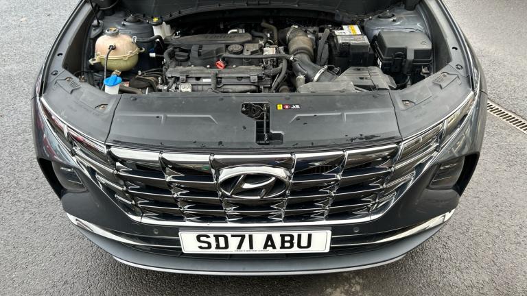 The Hyundai Tucson 1.6 TGDi Premium features a 1.6-litre turbocharged petrol engine paired with a 6-speed automatic gearbox, delivering smooth and refined acceleration while maintaining efficient fuel economy.The Premium trim level adds a touch of sophistication with 19-inch alloy wheels, heated front seats, a heated steering wheel, and dual-zone climate control. The cabin features a large 10.25-inch touchscreen infotainment system with built-in navigation, plus Apple CarPlay and Android Auto for seamless connectivity.Practicality is a highlight — the Tucson offers generous interior space for five passengers and a large 616-litre boot, making it ideal for both family trips and everyday errands.Safety and driver assistance features are comprehensive, including forward-collision-avoidance assist, lane keeping assist, blind-spot monitoring, and smart adaptive cruise control, giving confidence on every journey..Air Conditioning, Climate Control, Metallic Paint, Satellite Navigation, Heated Seats, DAB Radio, Bluetooth, Parking Sensors, USB, Diamond Cut Alloy Wheels, Keyless Entry-Push Button Start, Apple-Android Play, Rear Camera, Auto Lights& Rain Sensors, Front and rear electric windows with anti-trap mechanism and one touch control, Adjustable intermittent front windscreen wipers with aero wiper blade, Privacy glass - Rear windows and tailgate, Electric front windows with anti-trap mechanism and one touch control, Rear wash/wipe with intermittent wipe setting, Automatic defog system, Automatic windscreen wipers with rain sensor, Tinted glass with windscreen shade band, Electric rear windows, Anti-lock brake system (ABS), Electric parking brake with auto hold function, Vehicle stability management, Electronic stability control, Brake assist function, Trailer stability assist, Emergency stop signalling system, Hill start assist control (HAC), Downhill brake control