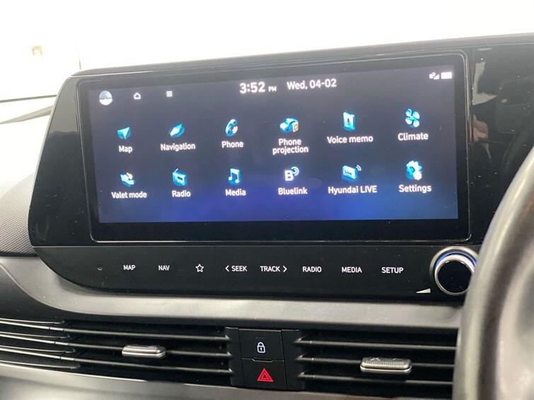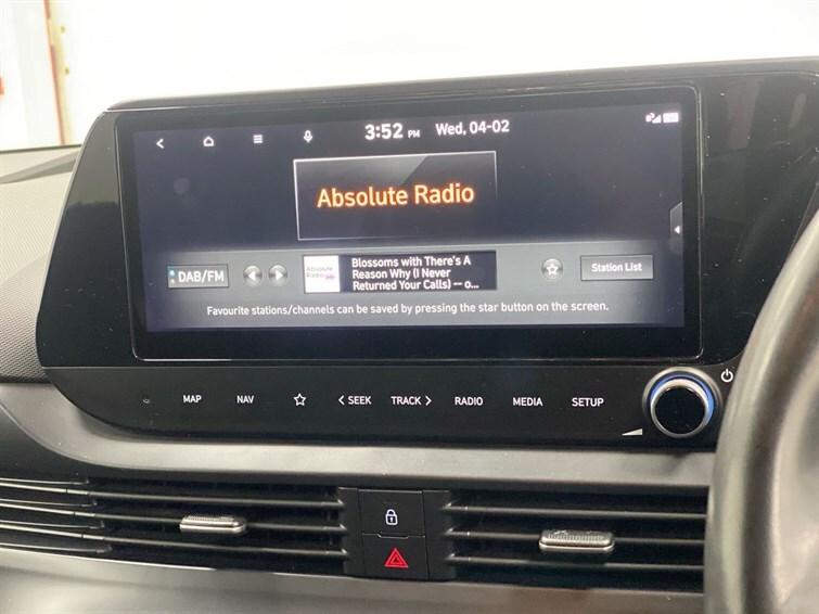 10.25"" digital supervision cluster,10.25"" touchscreen centre console display satellite navigation including traffic messaging channel,,12V power outlet in front console,17"" Alloy wheels,2 front and 2 rear speakers with 2 tweeters,3 point front seatbelts with pre-tensioners,3 point rear seatbelts,3 rear seats,60/40 split folding rear seat,Adjustable head restraints,Adjustable intermittent front windscreen wipers with aero wiper blade,Airbags - front, front side and curtain airbags,Anti-lock braking system (ABS),Auto dimming rear view mirror,Automatic climate control with defog system for front windscreen,Automatic headlights with dusk sensor,Automatic windscreen wipers with rain sensor,Autonomous emergency braking,Black mono interior trim,Blue interior mood lighting,Bluelink telematics,Bluetooth connectivity with voice recognition,Body colour bumpers,Body colour door handles,Body colour door mirrors with integrated indicators,Cabin and luggage compartment interior lighting,Childproof rear door locks,Chrome finish window surround,Cloth seat trim,Cruise control with speed limiter,DAB radio,Deadlocks,Drive mode selector,Driver attention alert system,Driver's seat manual height adjustment,eCall emergency call system,Electric adjustable/heated/folding door mirrors,Electric front/rear windows with drivers one touch/anti-trap,Electric power steering,Electronic Stability Programme (ESP),Emergency stop signalling system,Forward collision assist with pedestrian monitoring and cycle detection,Front and rear seatbelt reminder,Front armrest/storage,Front passenger airbag deactivation switch,Gloss black radiator grille,Heated front seats,Heated steering wheel,Height adjustable front seatbelts,Height/reach adjustable steering column,High beam assist,Hill start assist control (HAC),Illuminated driver/passenger vanity mirror,Immobiliser,Impact sensing auto door unlocking,Interior front map reading light,Isofix child seat anchorage points - rear,Lane departure warning system with lane keep assist - LKAS,Leather wrapped gear shift knob,Leather wrapped steering wheel,LED daytime running lights,LED headlamps,LED rear combination lights,Locking wheel nuts,Luggage board,Michelin Tyre brand,Perimeter alarm,Phone connection with apple carPlay and android auto,Privacy glass - Rear windows and tailgate,Rear parking sensors,Rear roof spoiler with integrated LED brake light,Rear side wing doors,Rear view camera,Rear wash/wipe with intermittent wipe setting,Remote control ce...