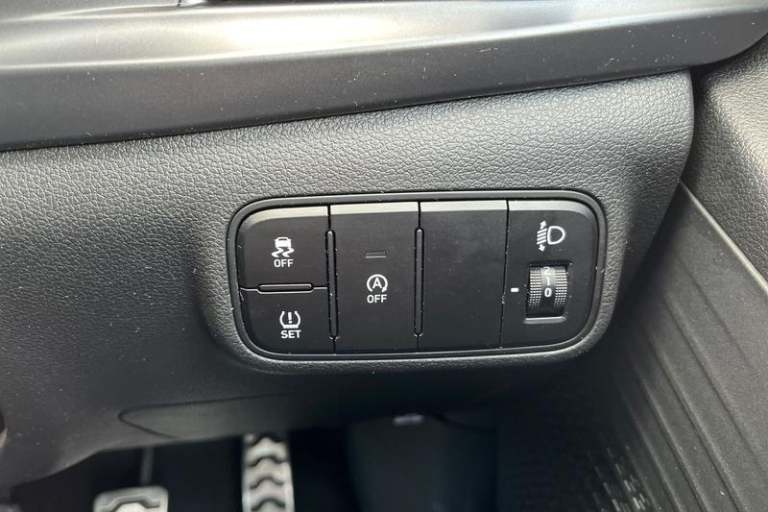 10.25 digital supervision cluster, 8 Touchscreen display audio + smart device integration, Bluetooth connectivity with voice recognition, Cruise control with speed limiter, Drive mode selector, Driver attention alert system, eCall emergency call system, Electric power steering, Emergency stop signalling system, Forward collision assist with pedestrian monitoring and cycle detection, Lane departure warning system with lane keep assist - LKAS, Phone connection with apple carPlay and android auto, Rear parking sensors, Rear view camera, Trip computer, Adjustable intermittent front windscreen wipers with aero wiper blade, Automatic headlights with dusk sensor, Black finish window surrounds, Body colour bumpers, Body colour door handles, Body colour door mirrors with integrated indicators, Bulb type rear combination lights, Electric adjustment and heated door mirrors, Electric front/rear windows with drivers one touch/anti-trap, Gloss black radiator grille, Halogen headlamps, High beam assist, LED daytime running lights, Rain sensor, Rear roof spoiler with integrated LED brake light, Rear side wing doors, Rear wash/wipe with intermittent wipe setting, Roof rails, Shark fin antenna, Static cornering light, Tinted windshield, 12V power outlet in front console, 3 rear seats, 60/40 split folding rear seat, Adjustable head restraints, Blue interior mood lighting, Cabin and luggage compartment interior lighting, Cloth seat trim, Driver's seat manual height adjustment, Height/reach adjustable