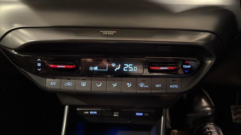 The Hyundai i20 is a practical and modern hatchback designed for everyday driving. With its sleek styling, efficient engines, and smooth handling, the i20 is ideal for both city commutes and longer journeys. Inside, it offers a comfortable cabin with smart technology features and generous space for passengers and luggage. Affordable to run and well-equipped as standard, the i20 is a reliable and stylish choice for drivers seeking value and versatility..Air Conditioning, Cruise Control, Satellite Navigation, Alloy Wheels, Bluetooth& USB, Electric front windows, Electric rear windows, Drivers one touch up/down with anti-trap, Tinted windows, Black window surrounds, Rear Windscreen Wiper - Intermittent Function, Automatic windscreen wipers with rain sensor, Automatic defog system for front windscreen, Adjustable intermittent front windscreen wipers with aero wiper blade, Privacy glass - Rear windows and tailgate, ESP, Emergency stop signalling system, Hill start assist control (HAC), Anti-lock brake system, Vehicle Stability Control (VSC), Bluetooth connectivity with voice recognition, Apple car play/Android Auto, Electric power steering, Cruise control + speed limiter, Rear parking sensor, Rear view camera, Lane departure warning system, Lane keep assist, Drive Mode Selector, Driver alert system, Forward collision assist with pedestrian monitoring and cycle detection, Haptic steering, Trip computer