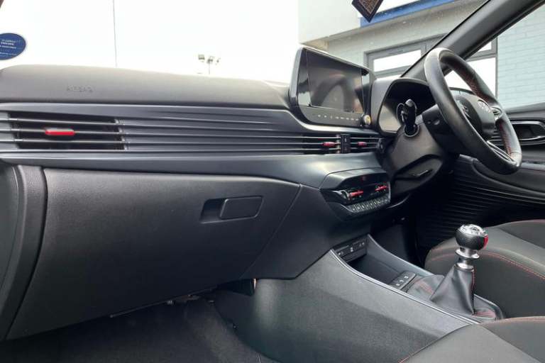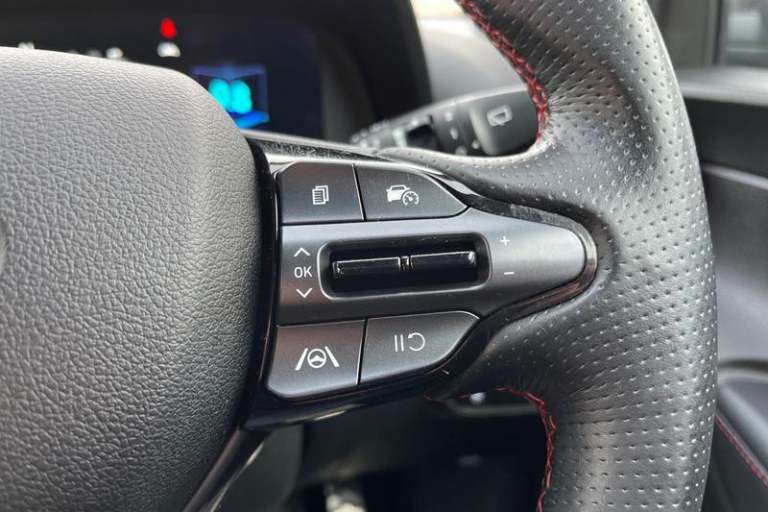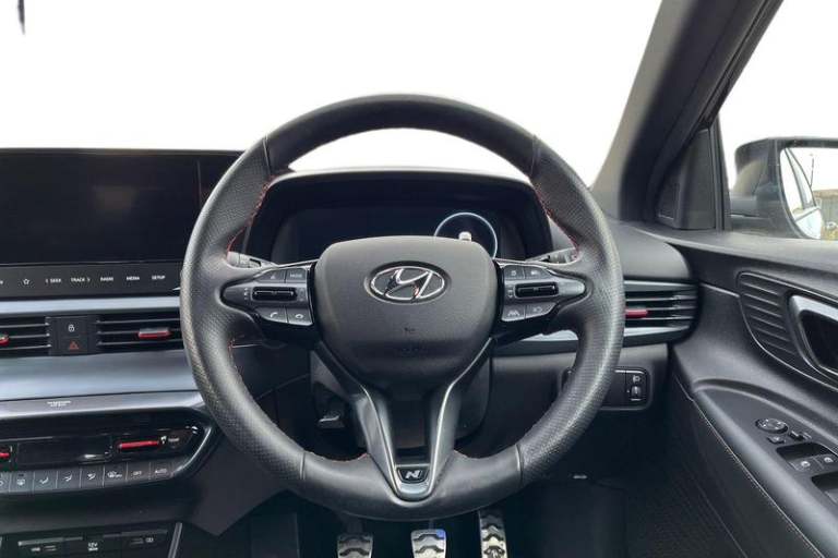 10.25 digital supervision cluster, 10.25 touchscreen centre console display satellite navigation including traffic messaging channel, map care and live services, Apple car play/Android Auto, Bluetooth connectivity with voice recognition, Cruise control + speed limiter, Drive mode selector, Driver alert system, eCall emergency call system, Electric power steering, Emergency stop signalling system, Forward collision assist with pedestrian monitoring and cycle detection, Haptic steering, Lane departure warning system, Lane keep assist, Rear parking sensor, Rear view camera, Trip computer, Adjustable intermittent front windscreen wipers with aero wiper blade, Auto dimming rear view mirror, Automatic defog system for front windscreen, Automatic headlights with dusk sensor, Automatic windscreen wipers with rain sensor, Black window surrounds, Body colour door mirrors with integrated indicators, Body colour exterior door handles, Body coloured bumpers, Drivers one touch up/down with anti-trap, Electric adjustable heated door mirrors, Electric folding door mirrors, Electric front windows, Electric rear windows, Front fog lights, High beam assist, LED rear combination lights, MFR - LED headlights, N line body kit bumpers, N Line exclusive gloss black radiator grille, Privacy glass - Rear windows and tailgate, Rear dual exhaust muffler, Rear roof spoiler with integrated LED brake light, Rear side wing doors, Rear Windscreen Wiper - Intermittent Function, Shark fin antenna, Signature