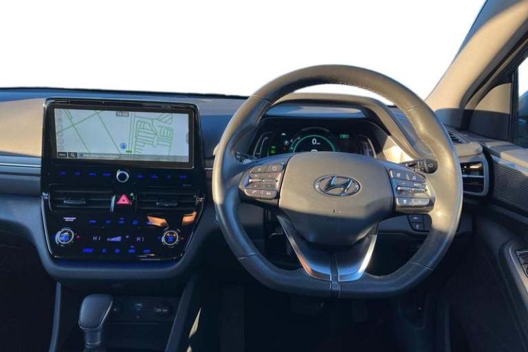 10.25 touchscreen satellite navigation includes traffic messaging channel, mapcare, live services and bluelink, Apple car play/Android Auto, Bluetooth system, Cruise control, Driver attention alert system, E-call, Eco driving assistant system (ECO DAS), Electric power steering with variable drive modes, Gear lever drive mode selector, Lane departure warning system with lane keep assist - LKAS, Parking Brake - Foot Brake, Parking system with rear camera and guidance system, Rear parking sensor, Rear view monitor, Roadside assistance, Supervision cluster with 7 high resolution TFT LCD, Voice recognition, Windscreen washer fluid sensor and warning indicator, Wireless phone charging pad, Active air flap radiator grille, Auto dimming rear view mirror, Automatic headlights with dusk sensor, Body colour bumpers, Body colour door handles with chrome inserts, Body colour door mirrors, Bodyside mouldings, Chrome door scuff with ioniq logo, Chrome finish window surround, Chrome radiator grille, Door mirror puddle lights, Electric adjustable door mirrors, Electric front windows - anti trap + one touch, Electric heated door mirrors, Heated rear windscreen, High beam assist, LED daytime running lights, LED Headlights, LED indicators in door mirrors, LED rear fog light, Positioning Lights - LED, Power folding door mirrors, Rain sensor, Rear electric windows, Rear LED lights, Rear roof spoiler with integrated LED brake light, Rear side wing doors, Rear wiper, Solar glass with windscreen